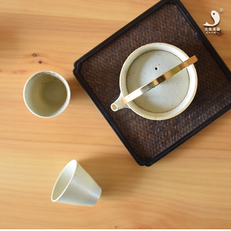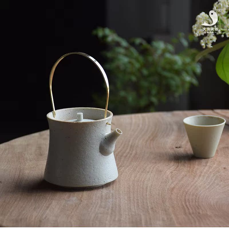 陶瓷銅提梁景德鎮原創手工泡茶壺小茶壺功夫茶具日式小號茶具簡約1入