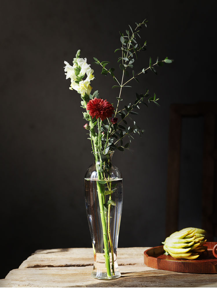 手工玻璃觀音瓶日式禪意小花瓶透明水培花器家居餐桌客廳插花擺件1入