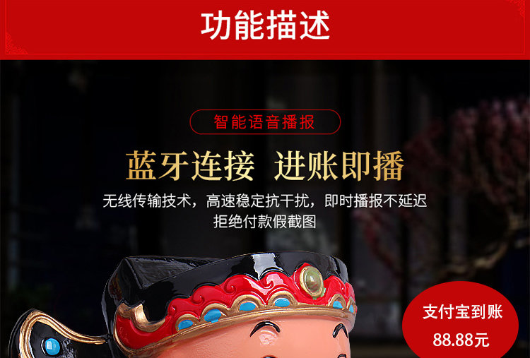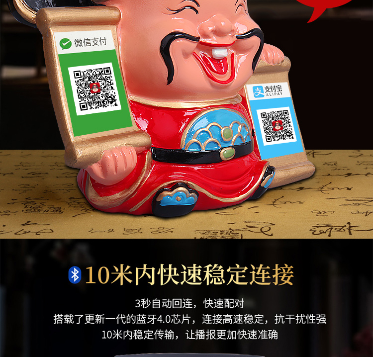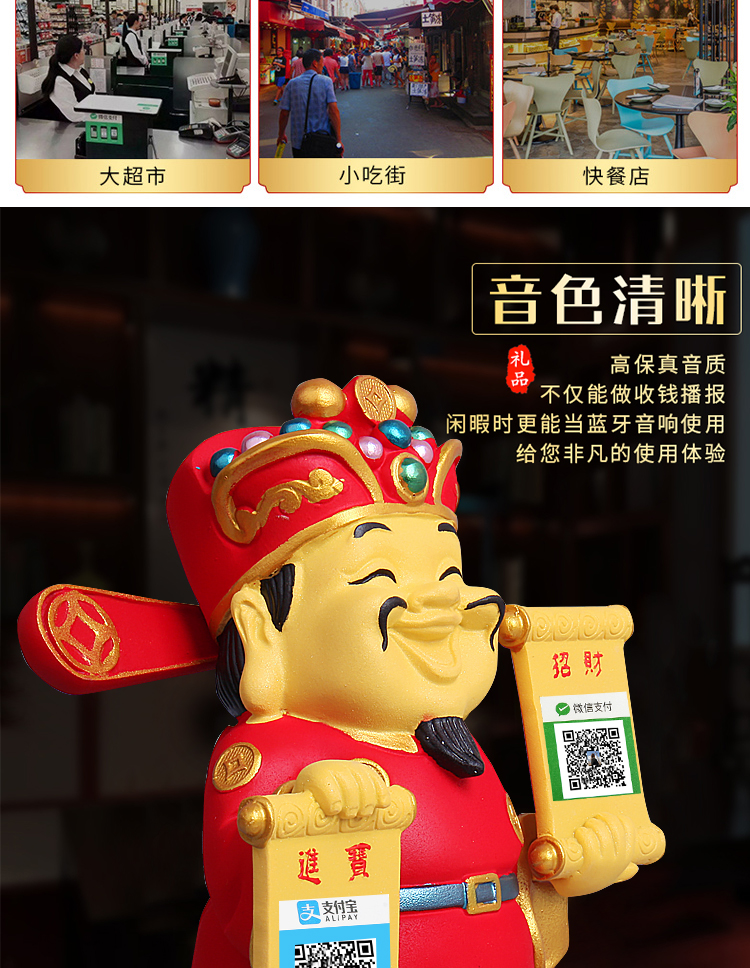 財神爺招財二維碼音響擺件送新店鋪開業飯店收銀臺裝飾品開張禮物1入