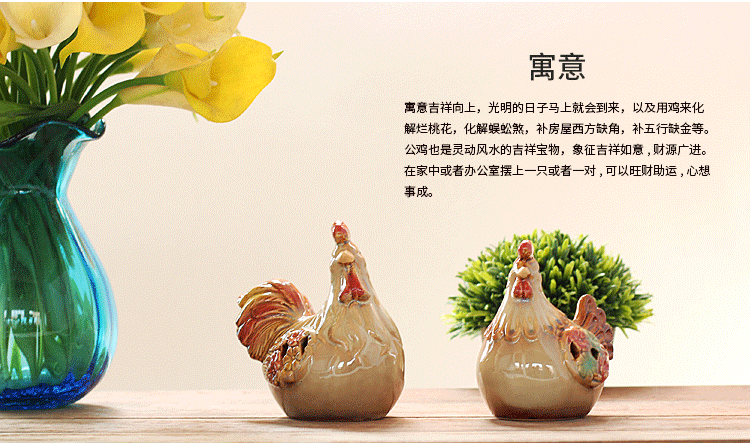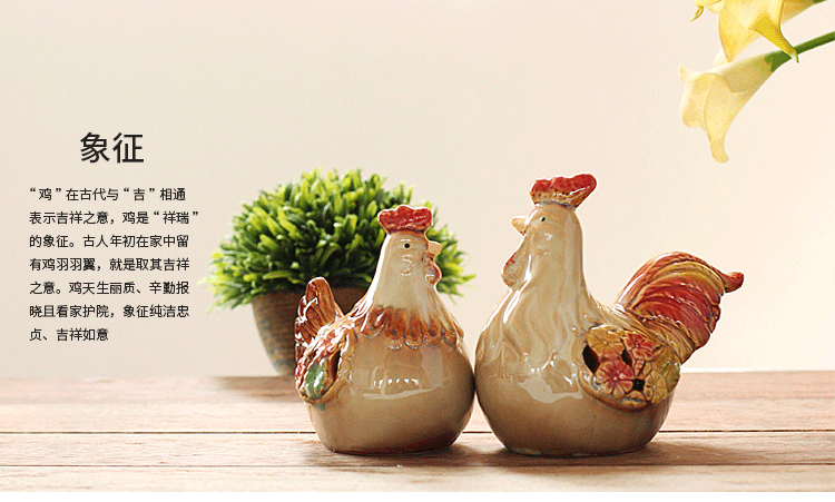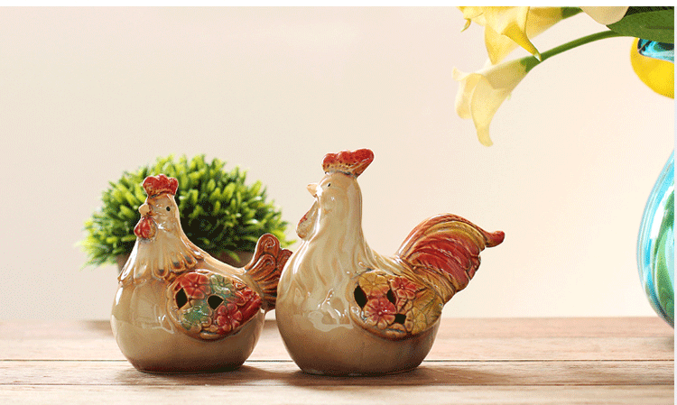 防小三陶瓷公雞擺件創意家居裝飾品現代簡約辦公室擺設生肖發財雞1入