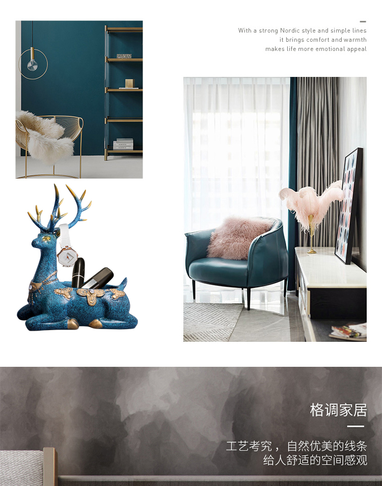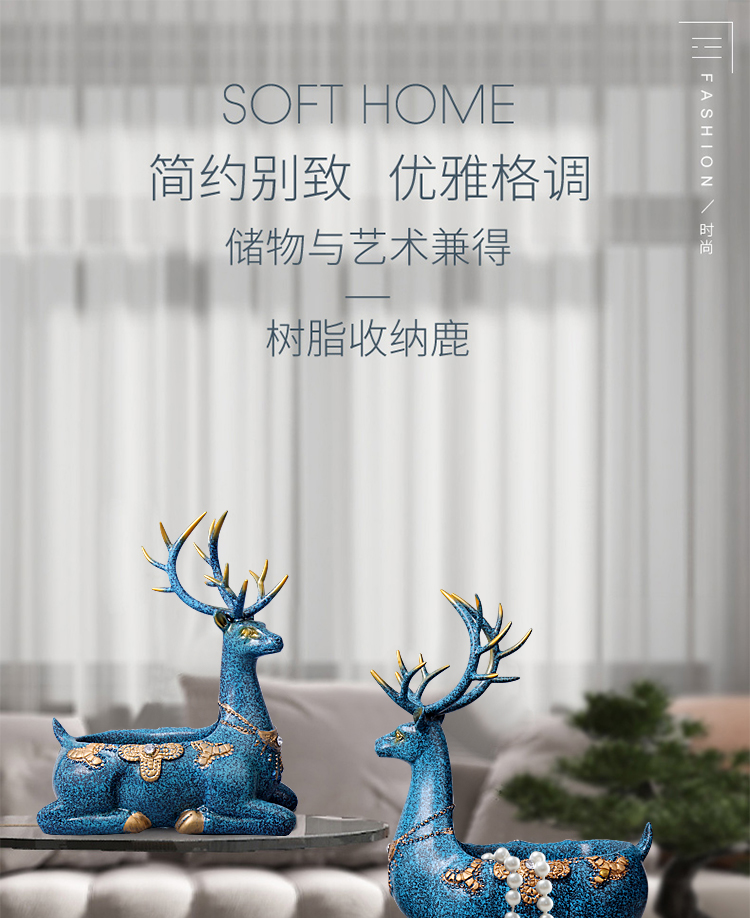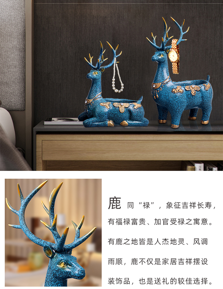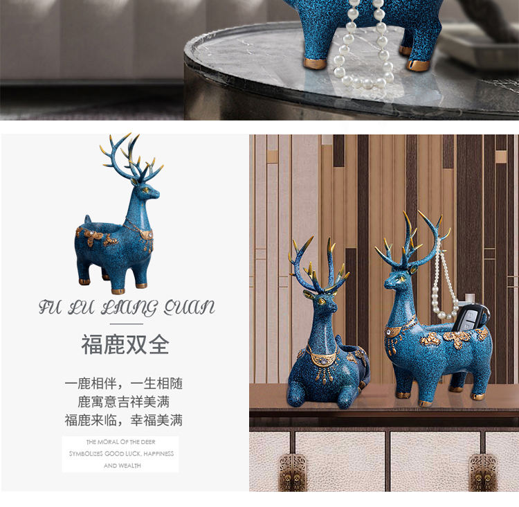 北歐招財麋鹿擺件客廳玄關創意家居裝飾品鞋柜茶幾鑰匙雜物收納盒1入