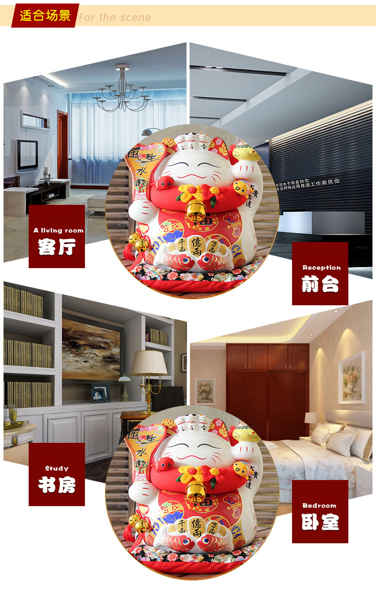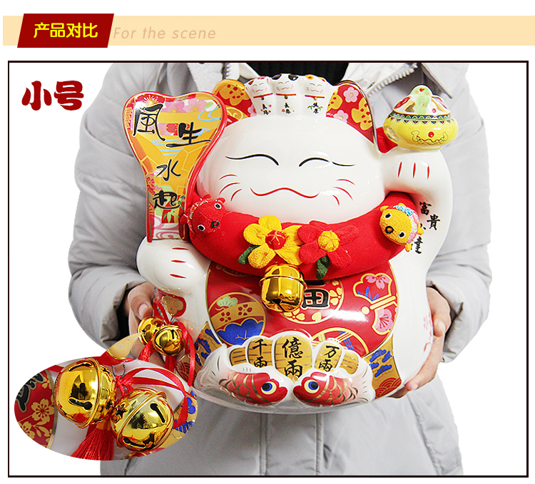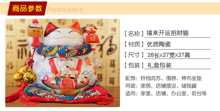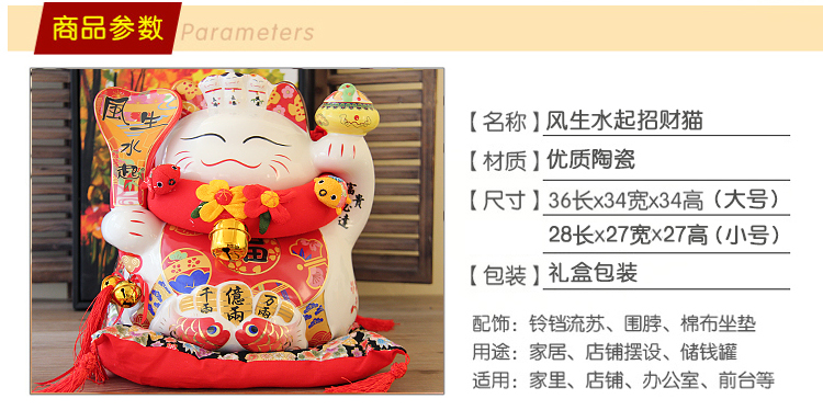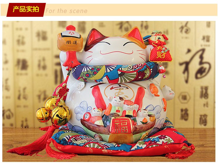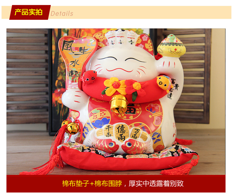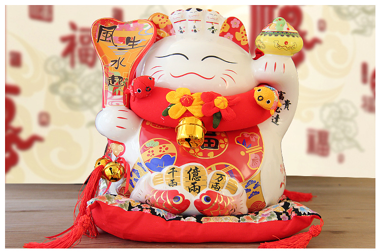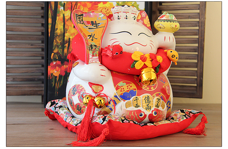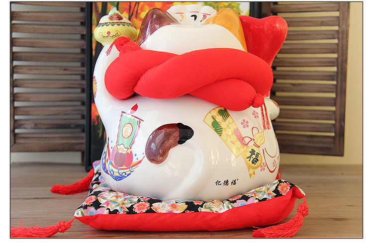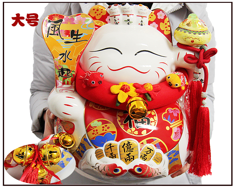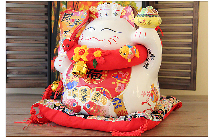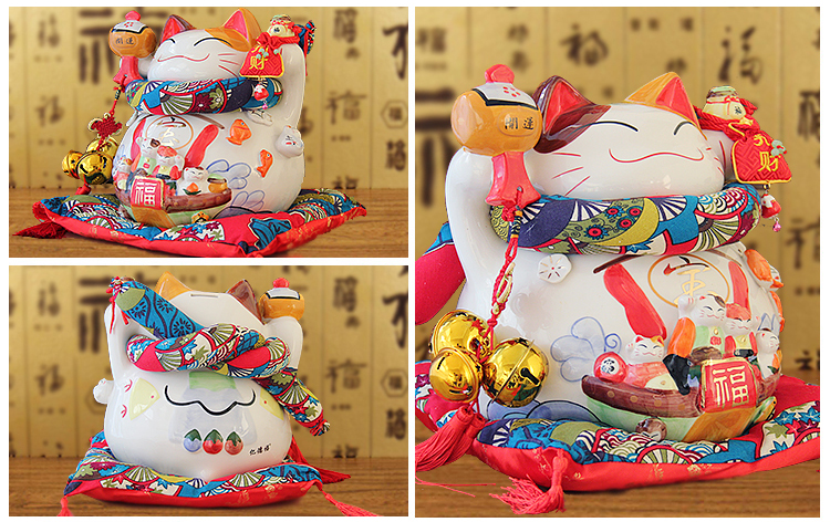 特大號16八方來財招財貓14寸開業喬遷禮品擺件創意陶瓷存錢儲蓄罐1入