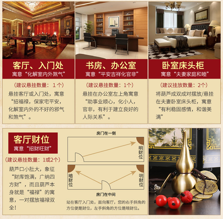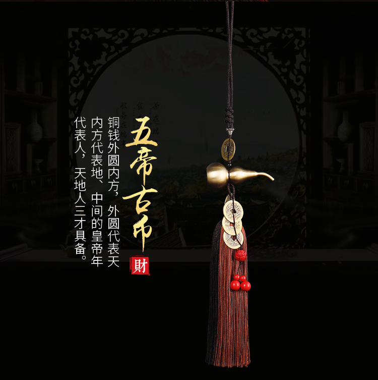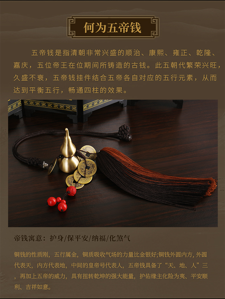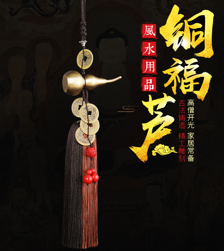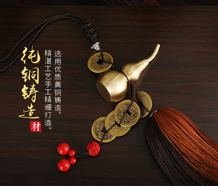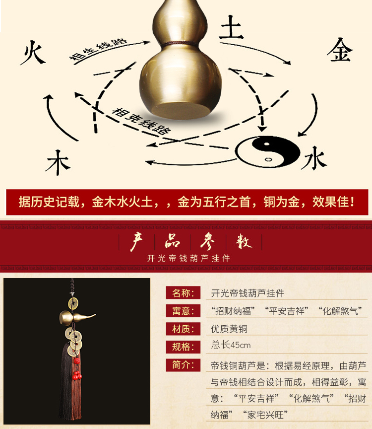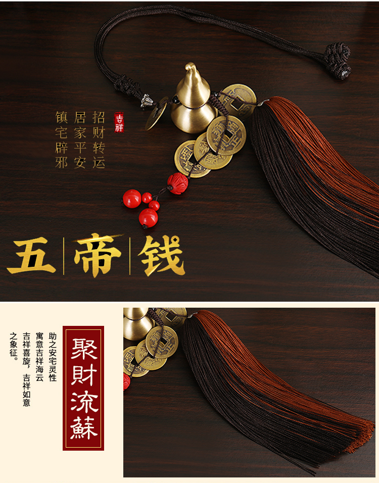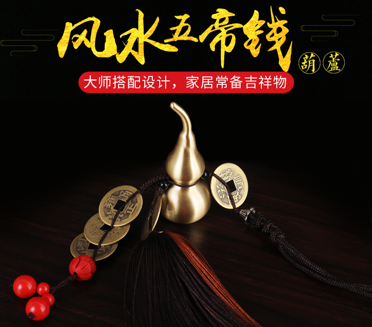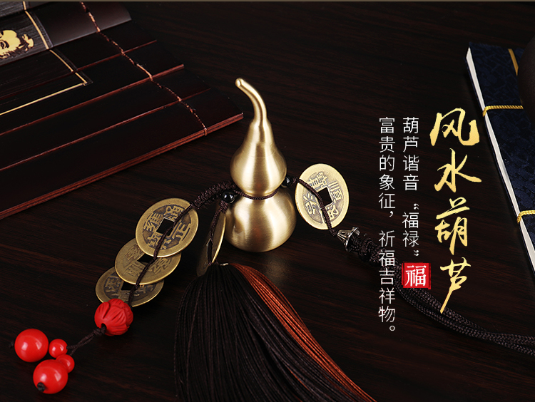銅葫蘆五帝錢開光招財鎮宅化煞擺件風水家居裝飾掛件銅錢工藝品1入