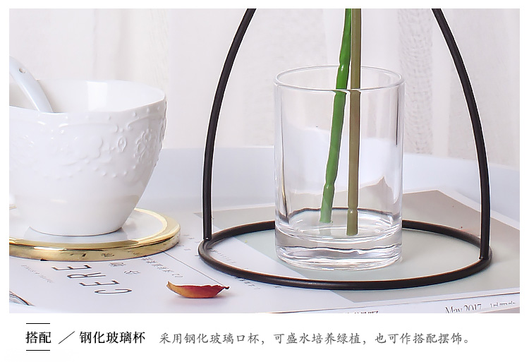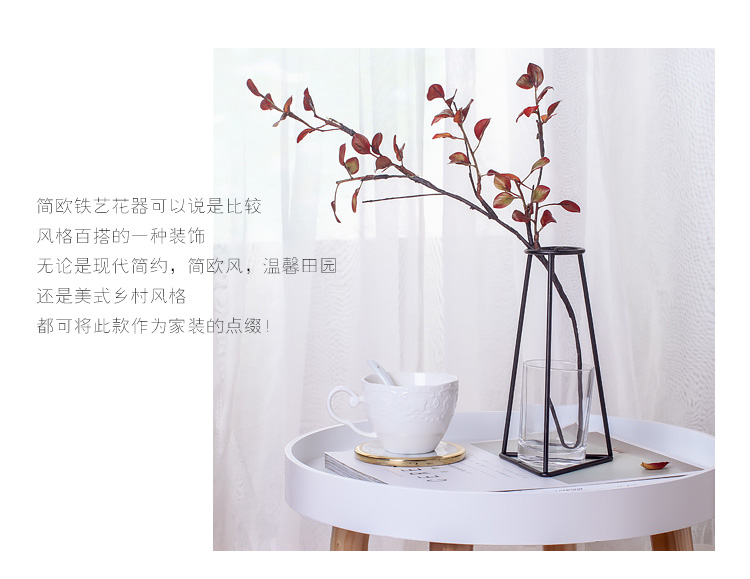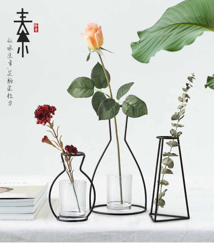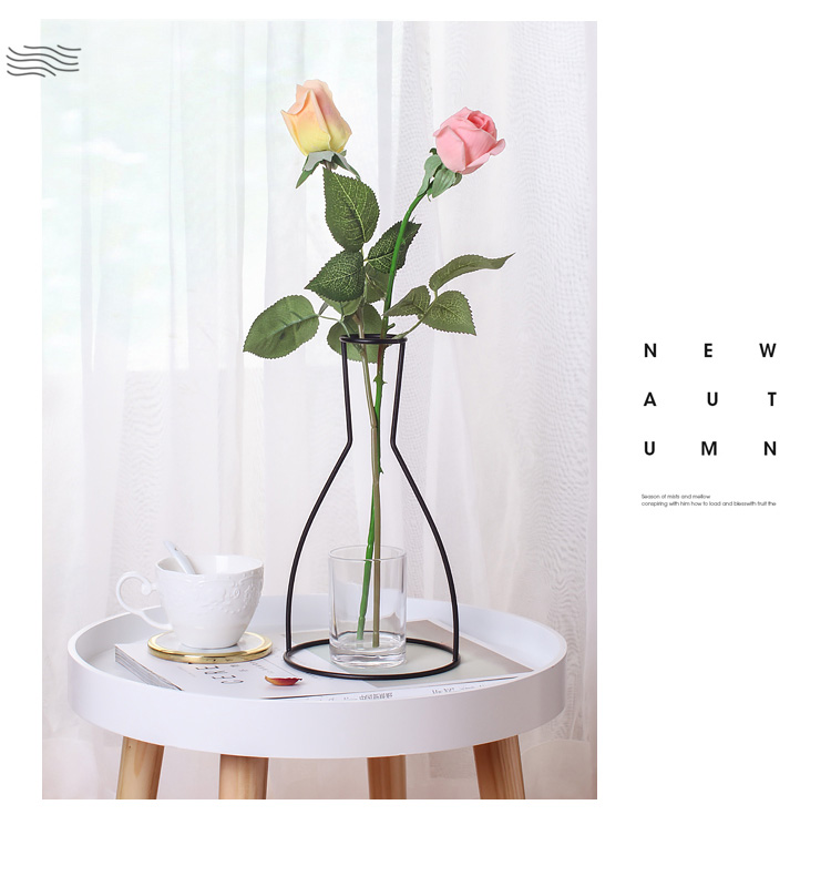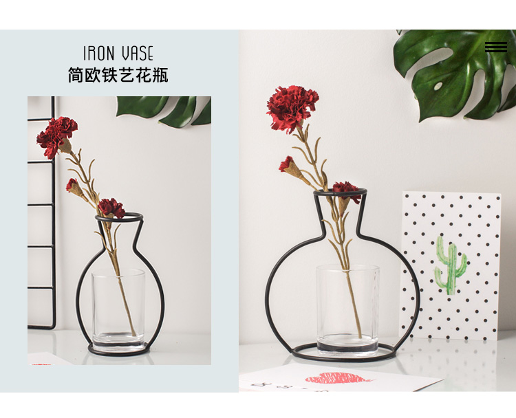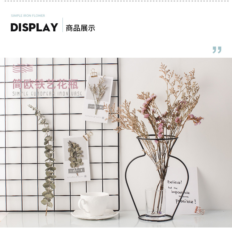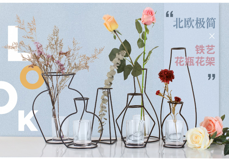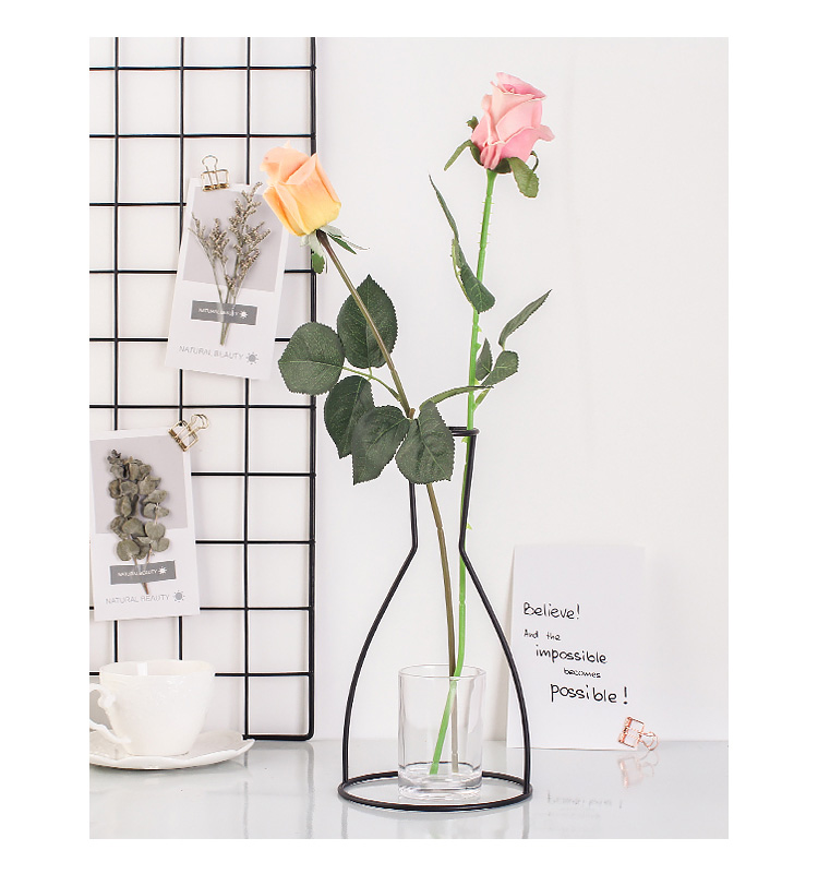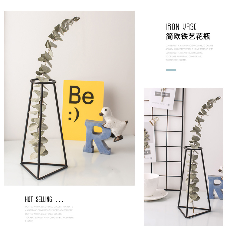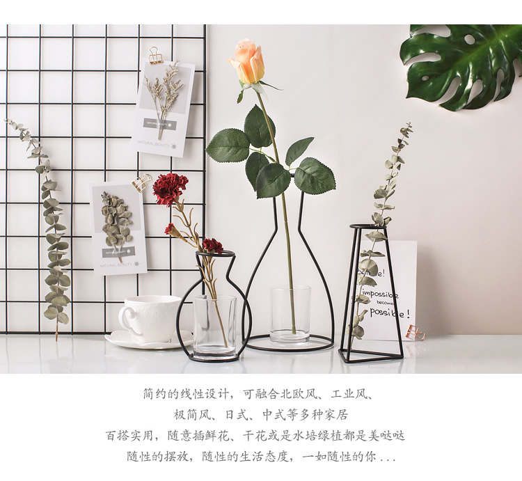 金屬線條花瓶櫥窗擺件北歐抽象鐵藝裝飾品家居擺設干花鮮花插花器1入