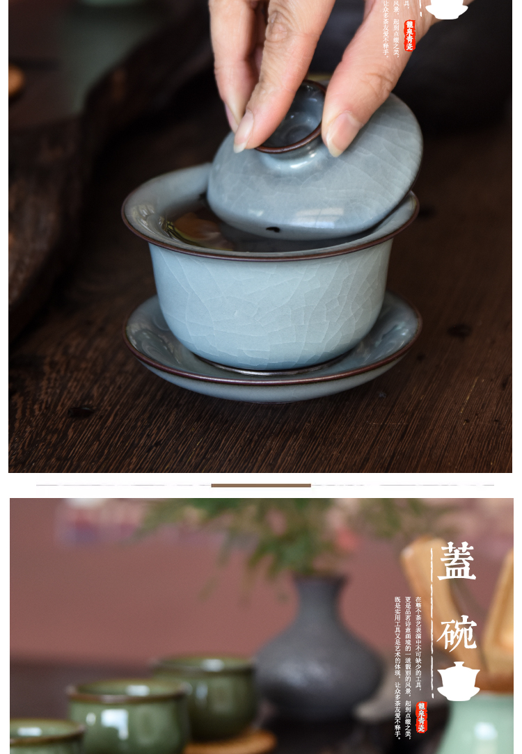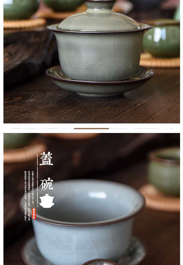 龍泉青瓷蓋碗茶杯茶碗家用王文哥窯鐵胎陶瓷功夫茶具三才蓋碗大號1入