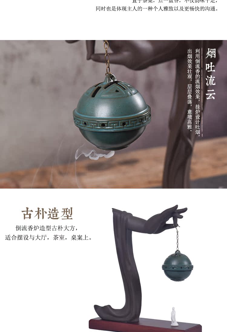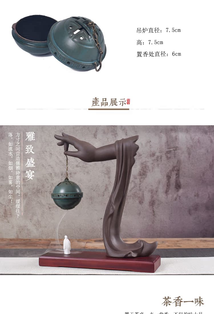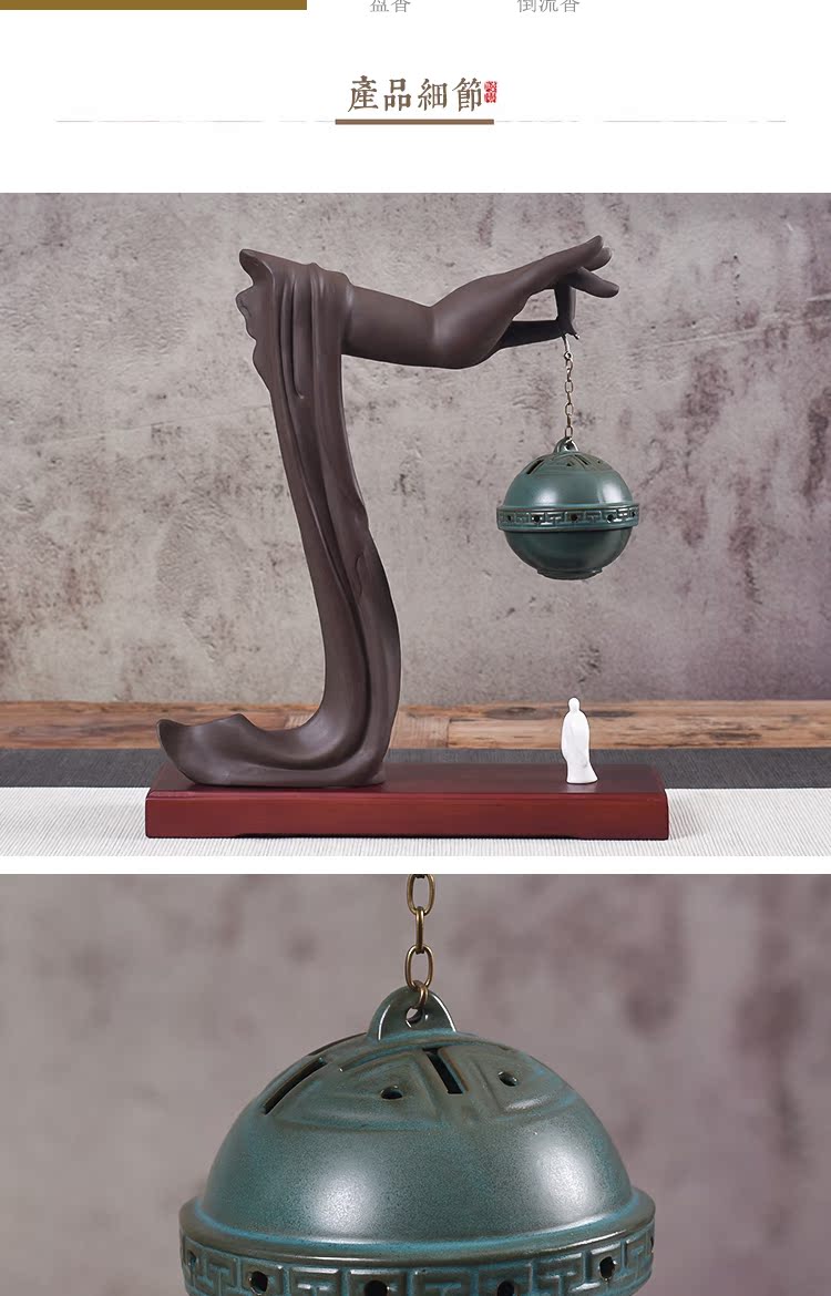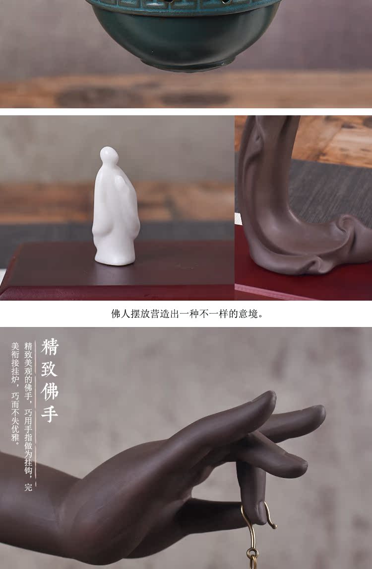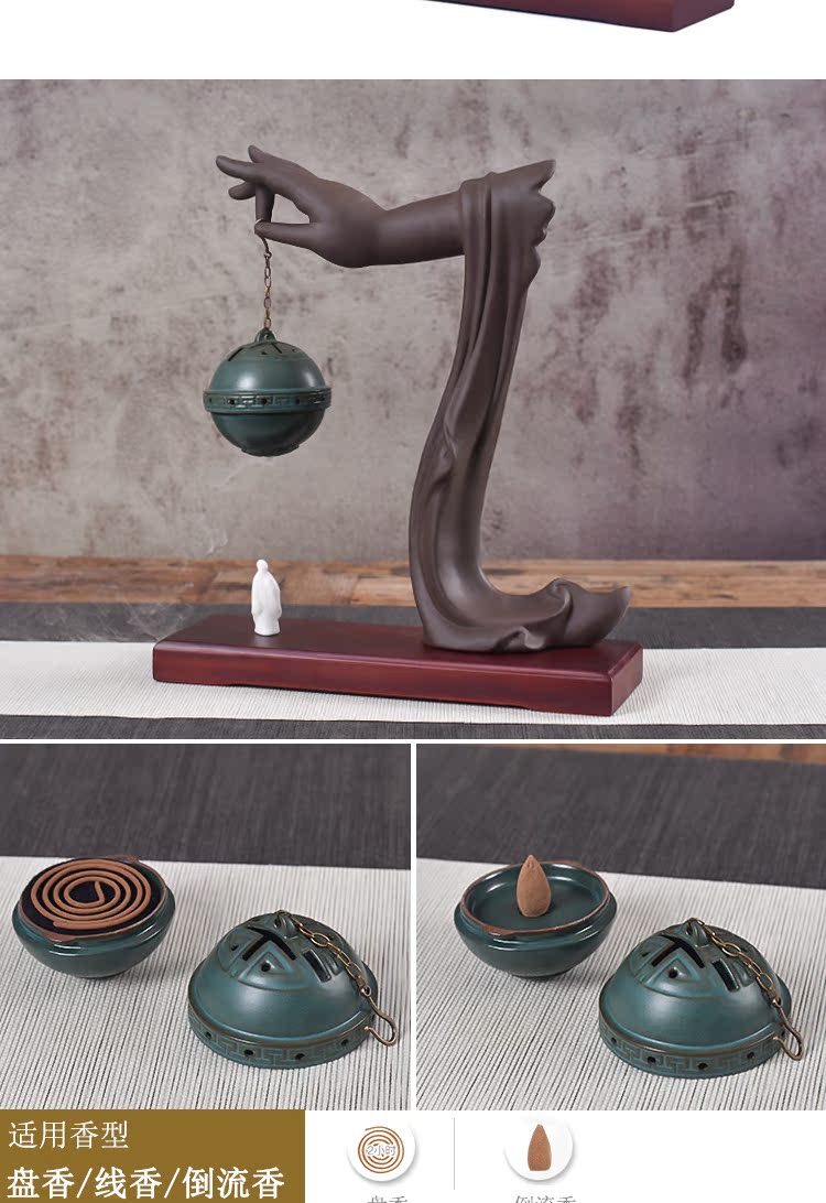 創意禪意擺件紫砂倒流香爐佛手檀香爐盤香家用仿古香薰爐大號香道1入