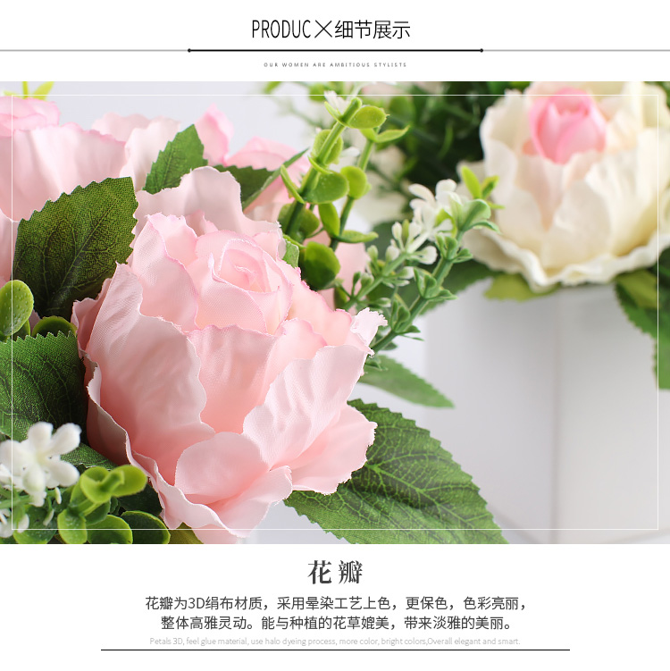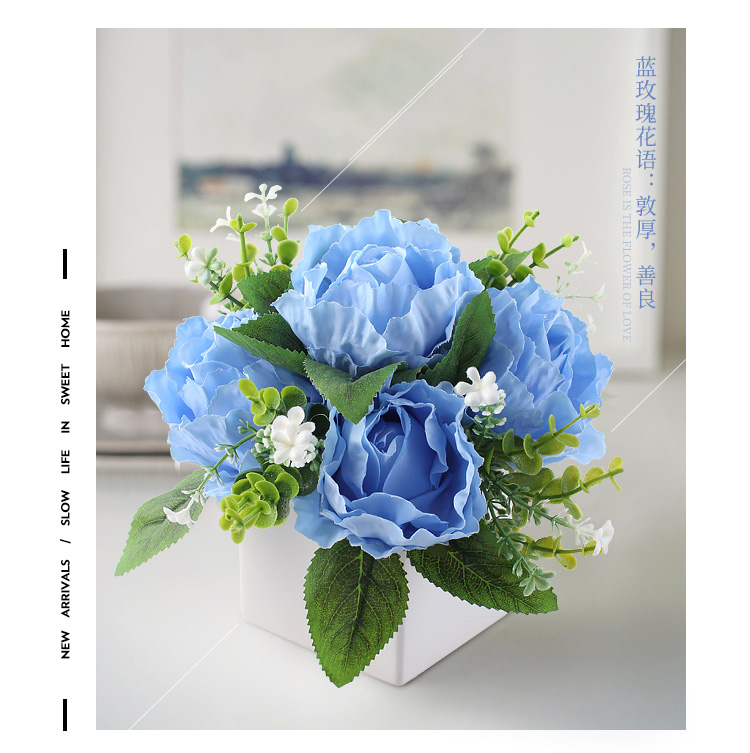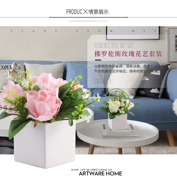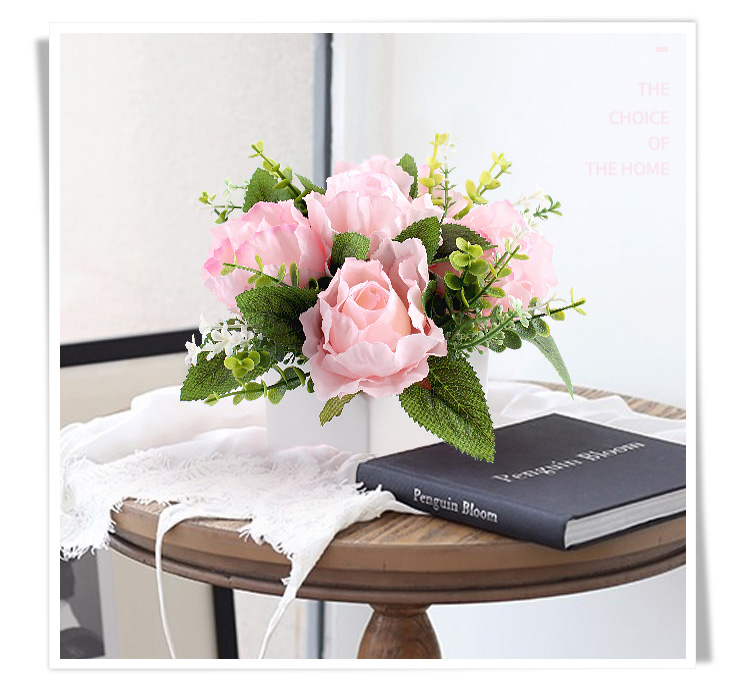 仿真花套裝客廳餐桌假花歐式玫瑰擺設臥室裝飾花藝絹花卉擺件花藝1入