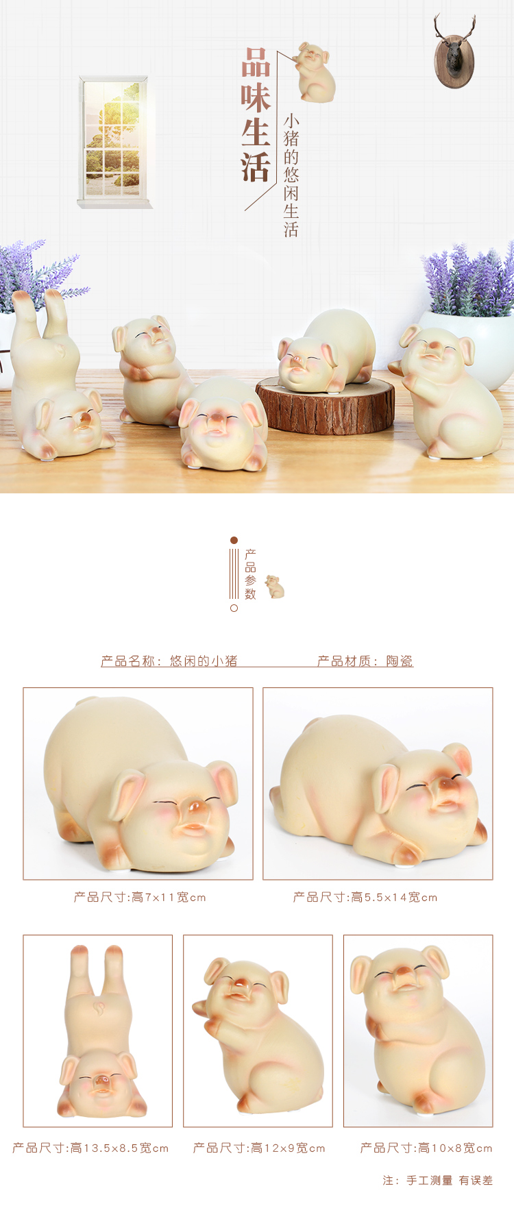 創意家居裝飾品擺件陶瓷卡通小豬兒童禮物玄關酒柜電視柜桌面擺設1入