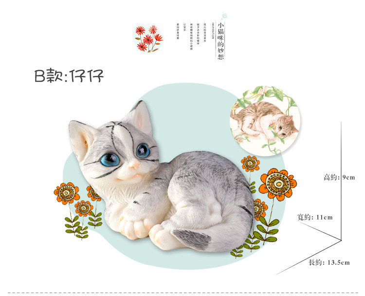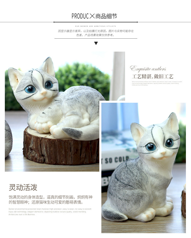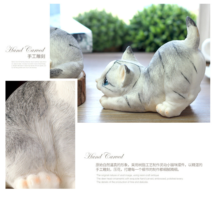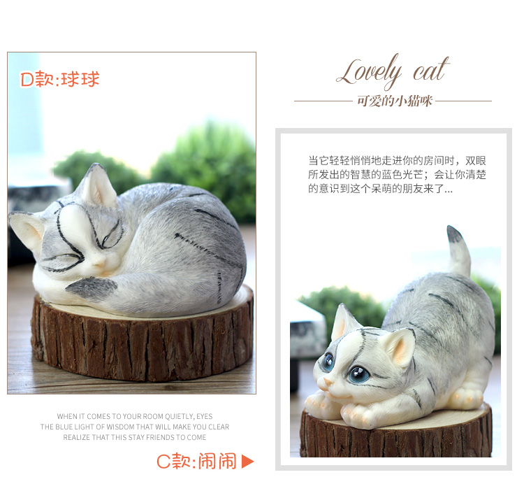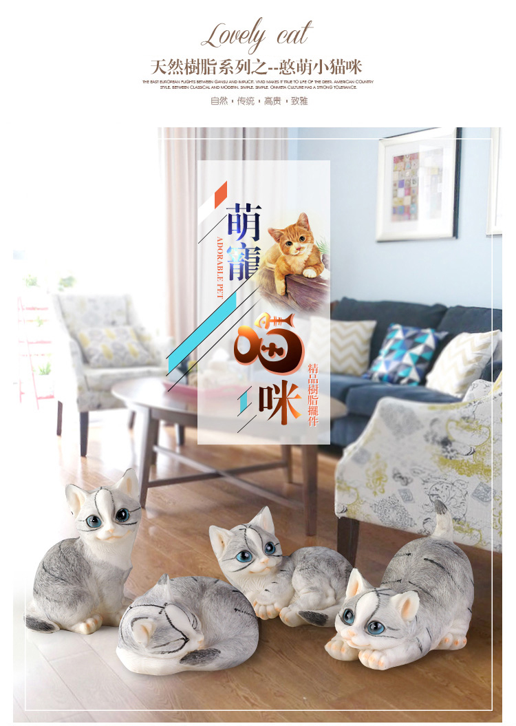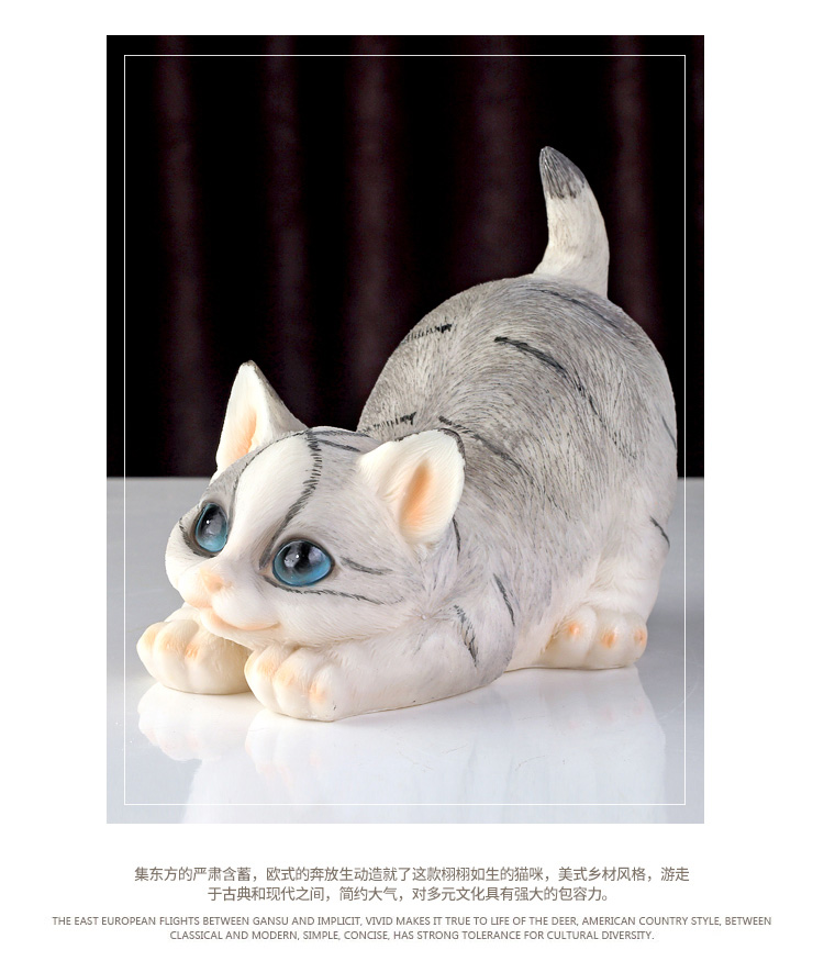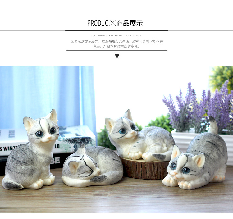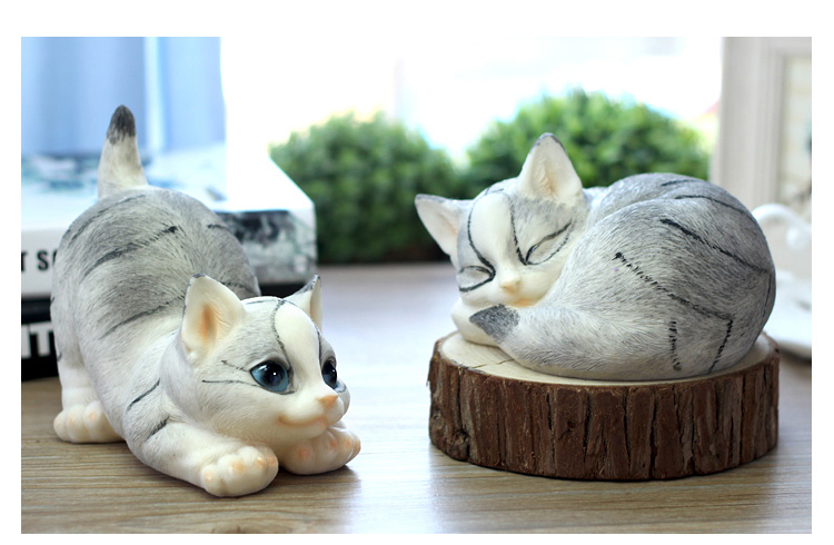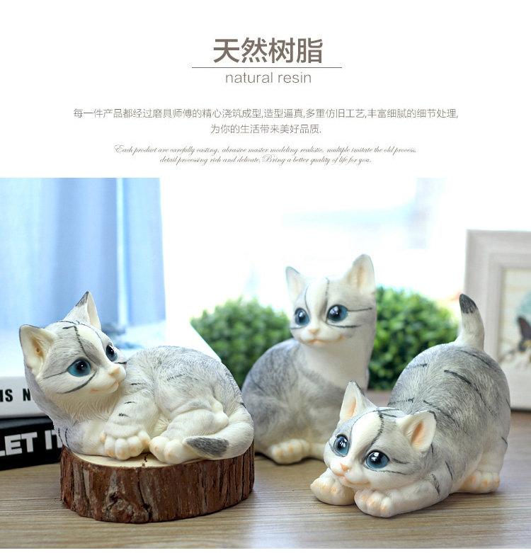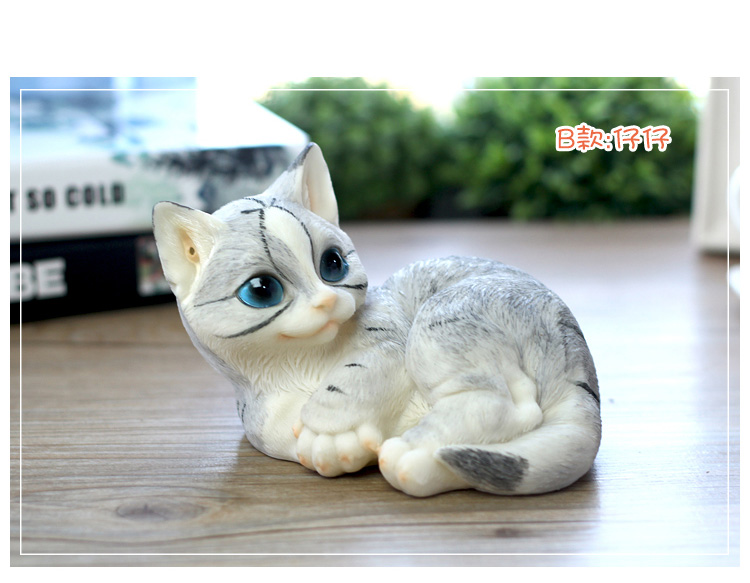 仿真貓咪客廳家居裝飾品創意禮物樹脂動物工藝品電視柜可愛小擺件1入