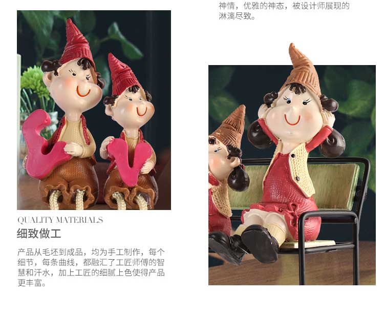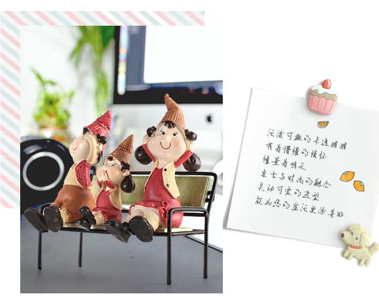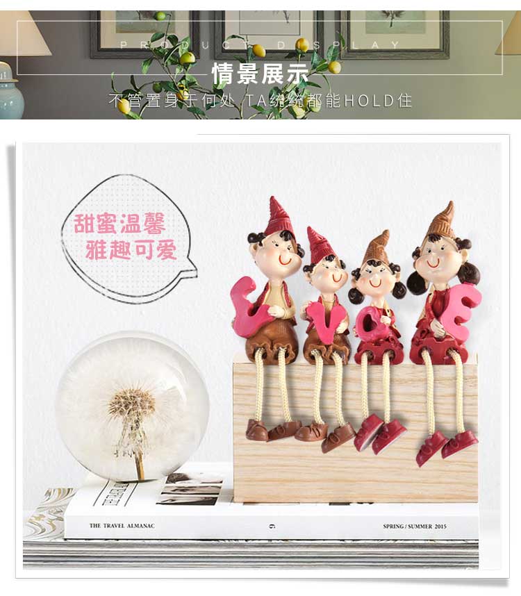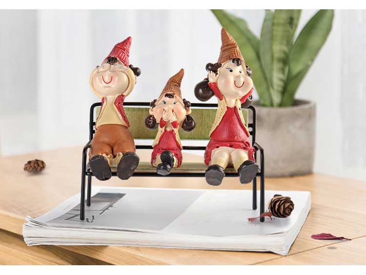田園創意擺設辦公室家居客廳電視柜裝飾品小擺件吊椅吊腳三不娃娃1入
