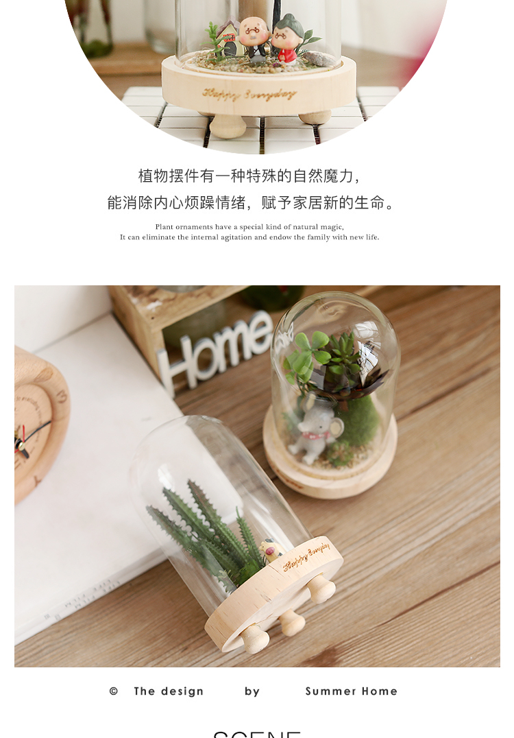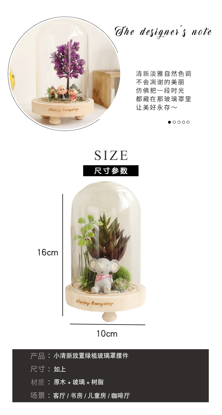 微景觀玻璃罩擺件現代簡約家居客廳酒柜裝飾品多肉植物擺設工藝品1入
