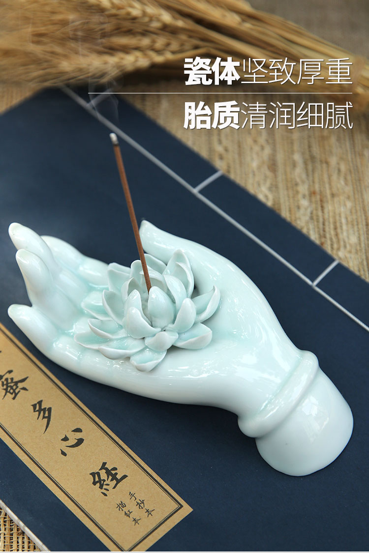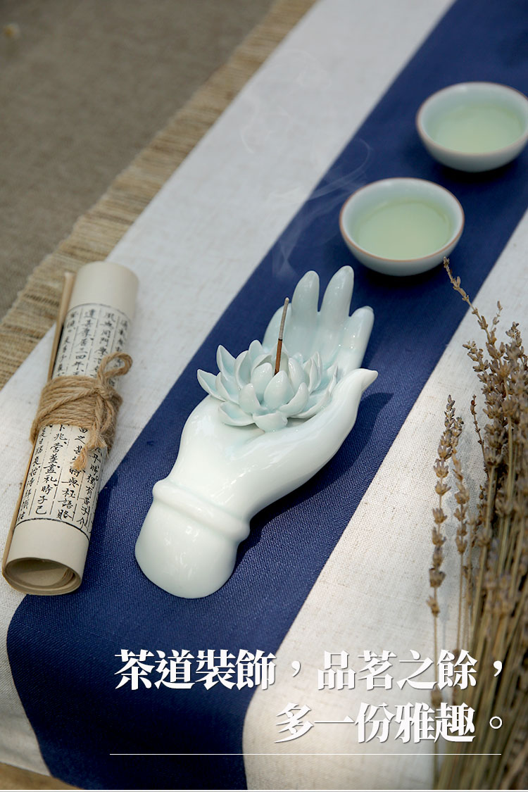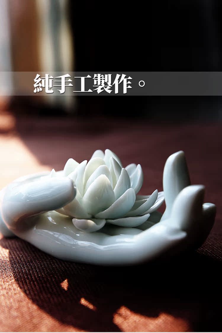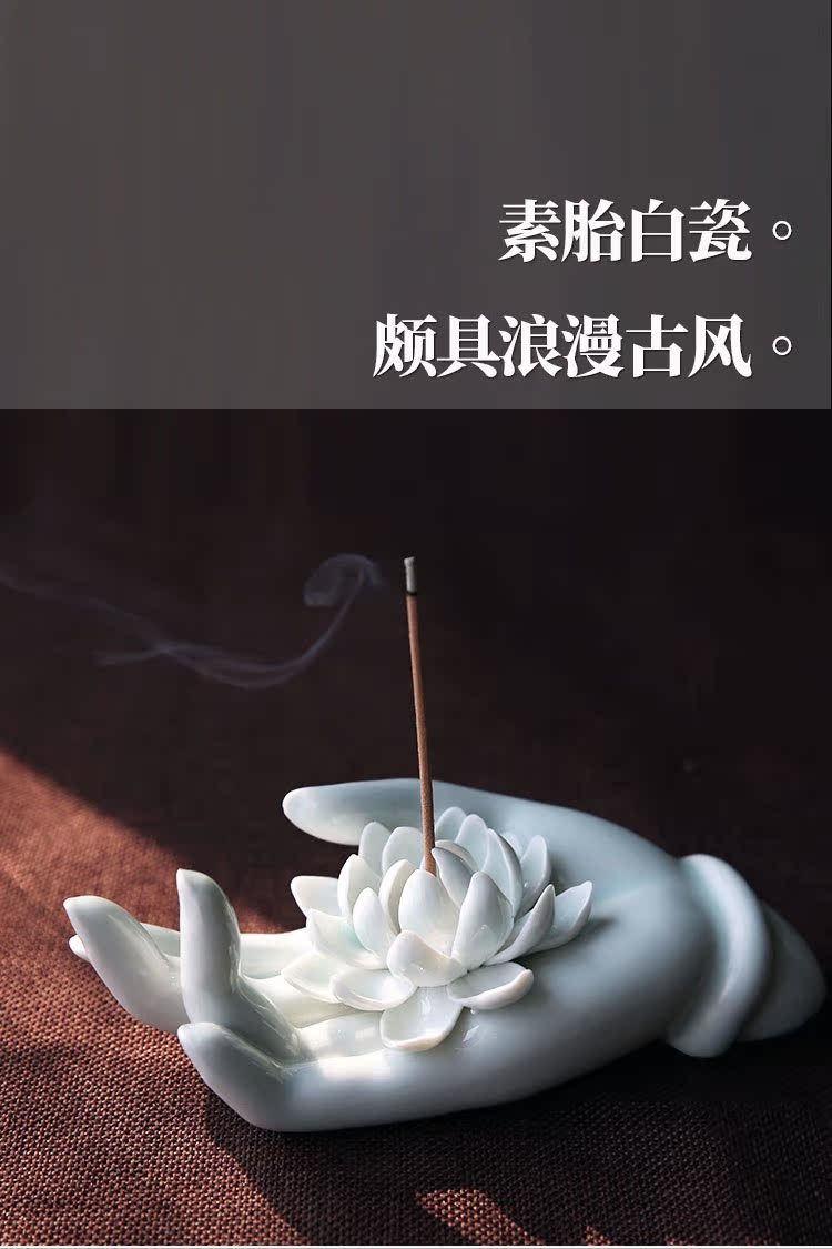 香托桌面擺件手工紙鎮禪意拈花香插白色蓮花陶瓷新古典中式香盤1入