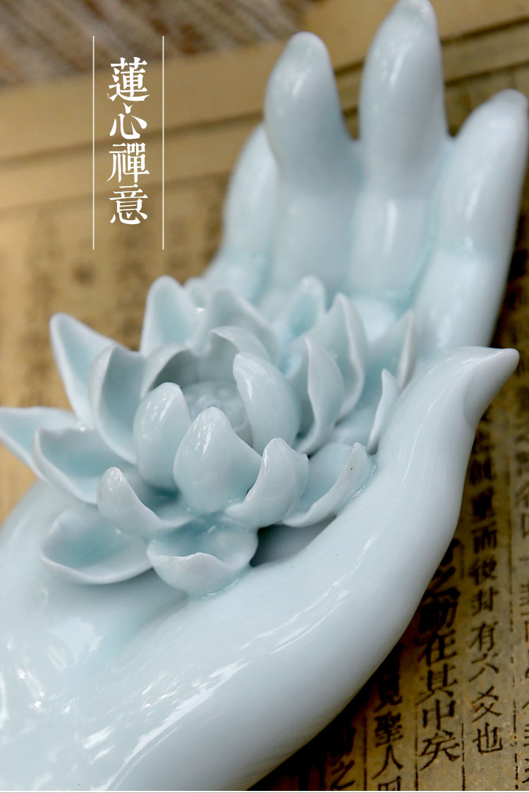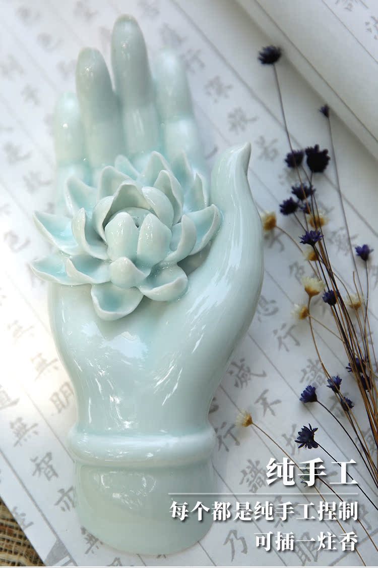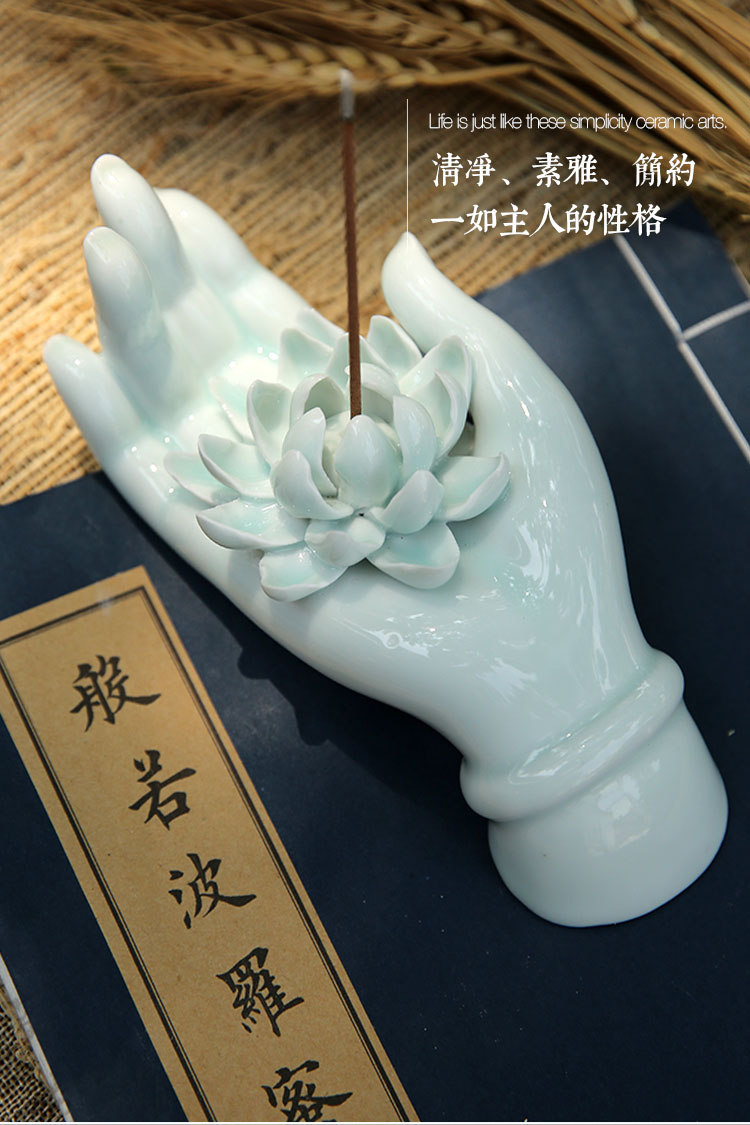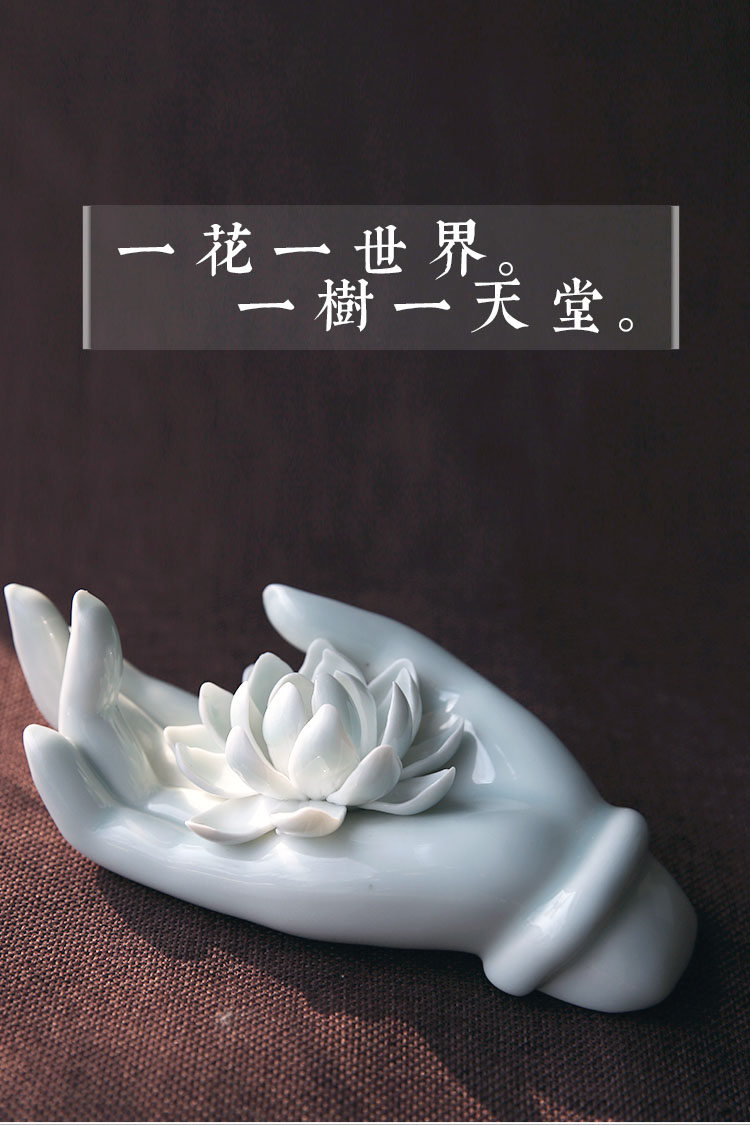 香托桌面擺件手工紙鎮禪意拈花香插白色蓮花陶瓷新古典中式香盤1入