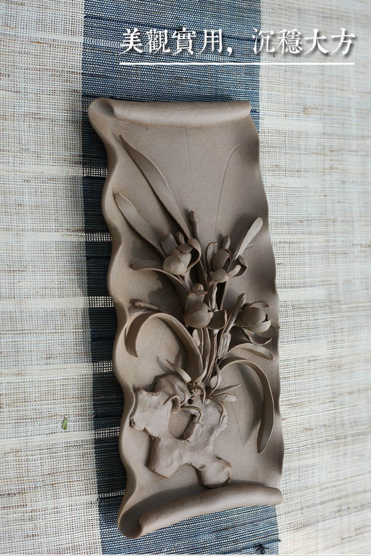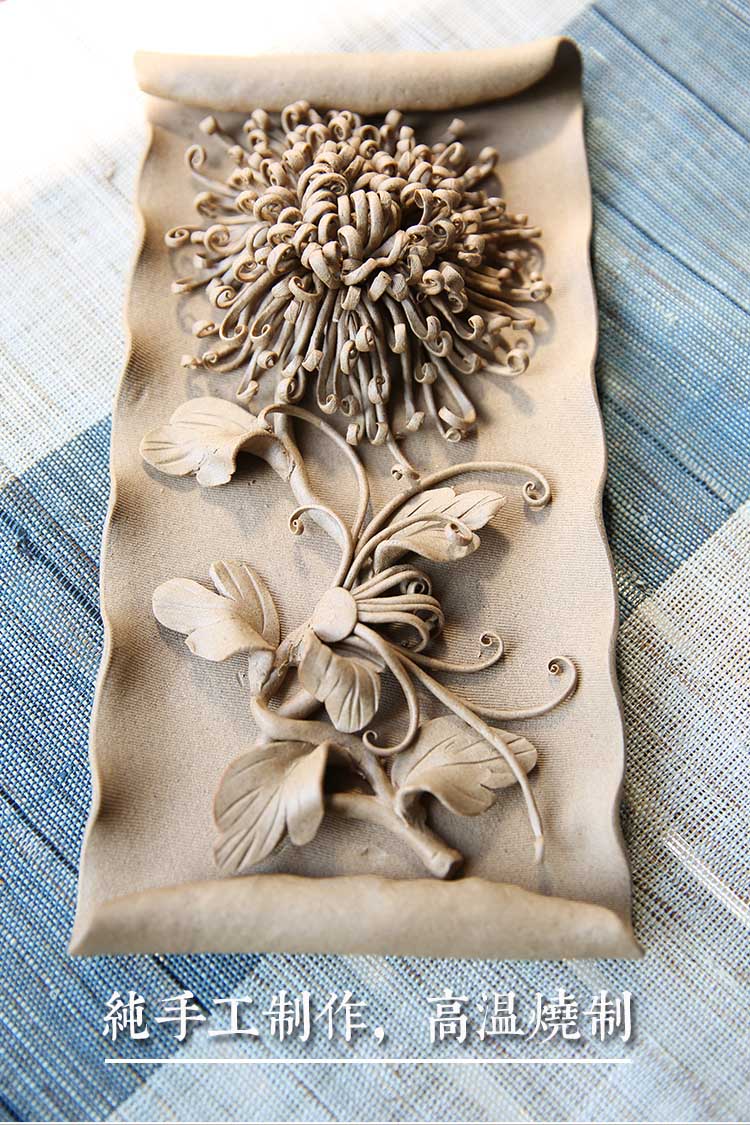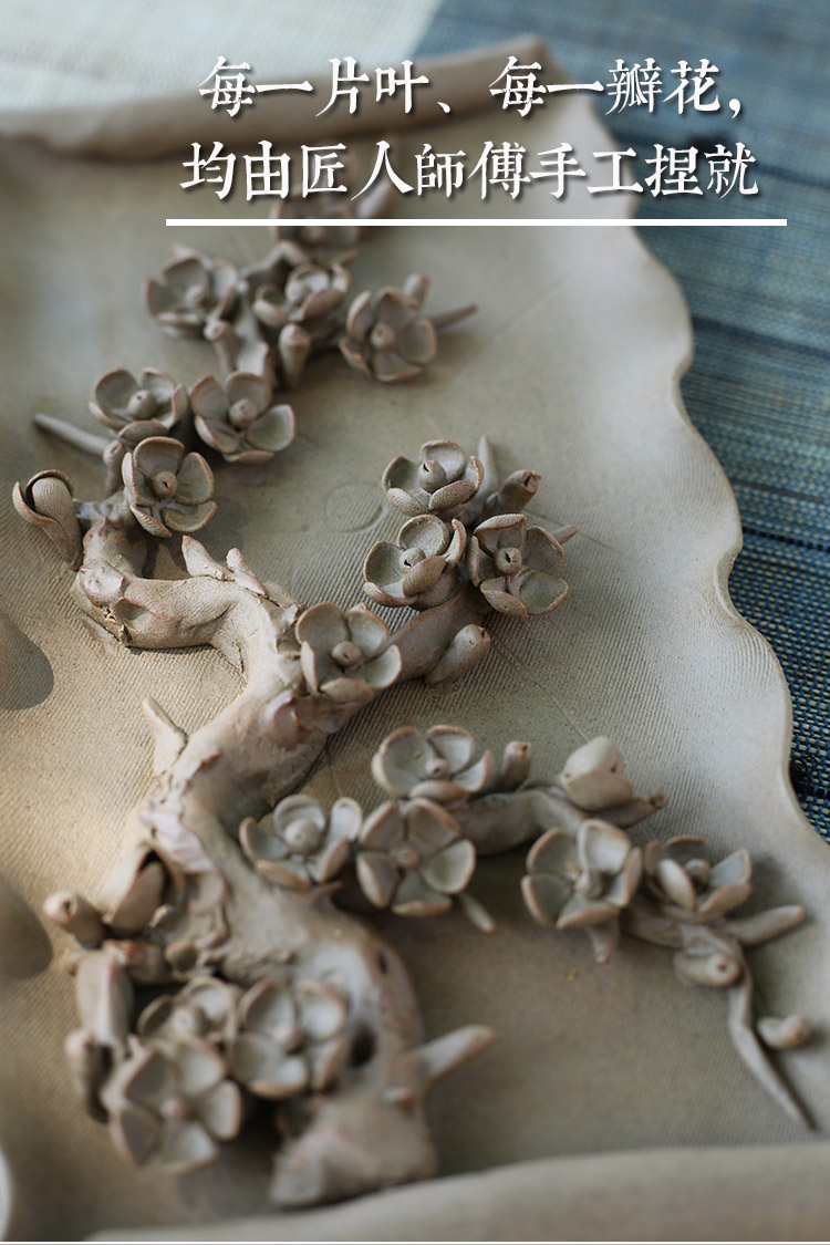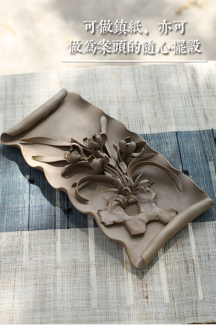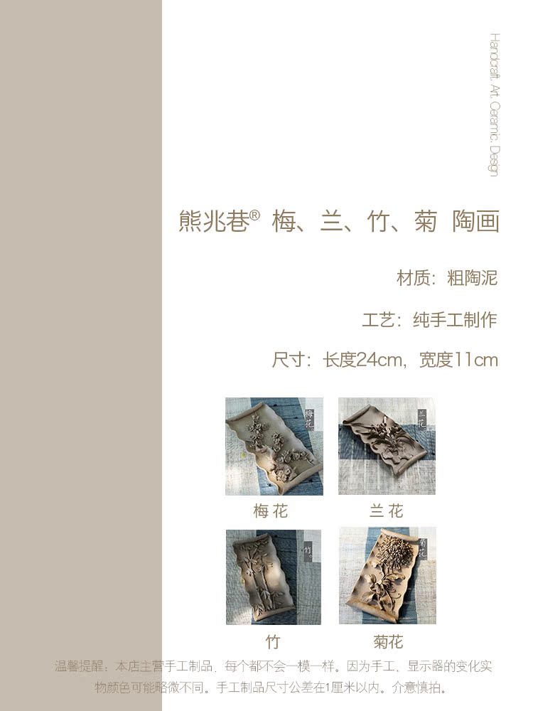 原創純手工粗陶泥桌面擺件個性鎮紙素雅禪意墻飾梅蘭竹可做裝飾畫1入