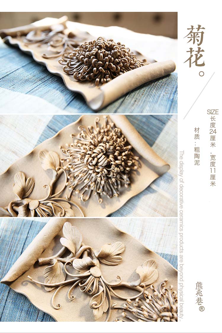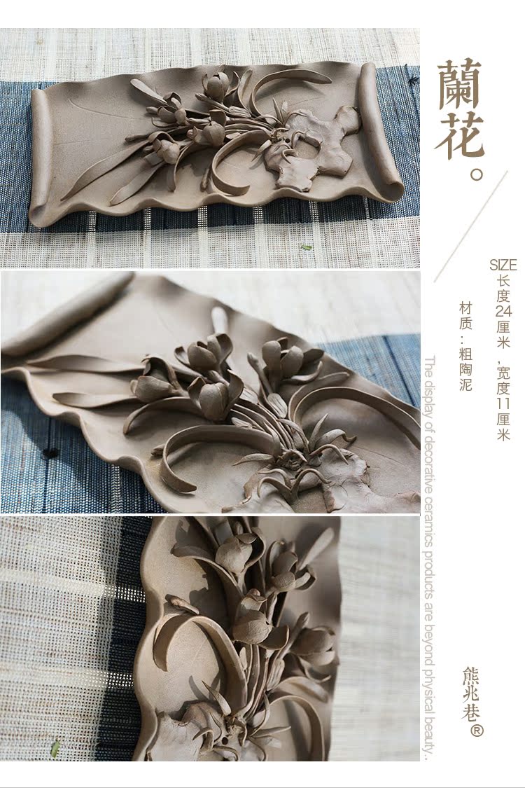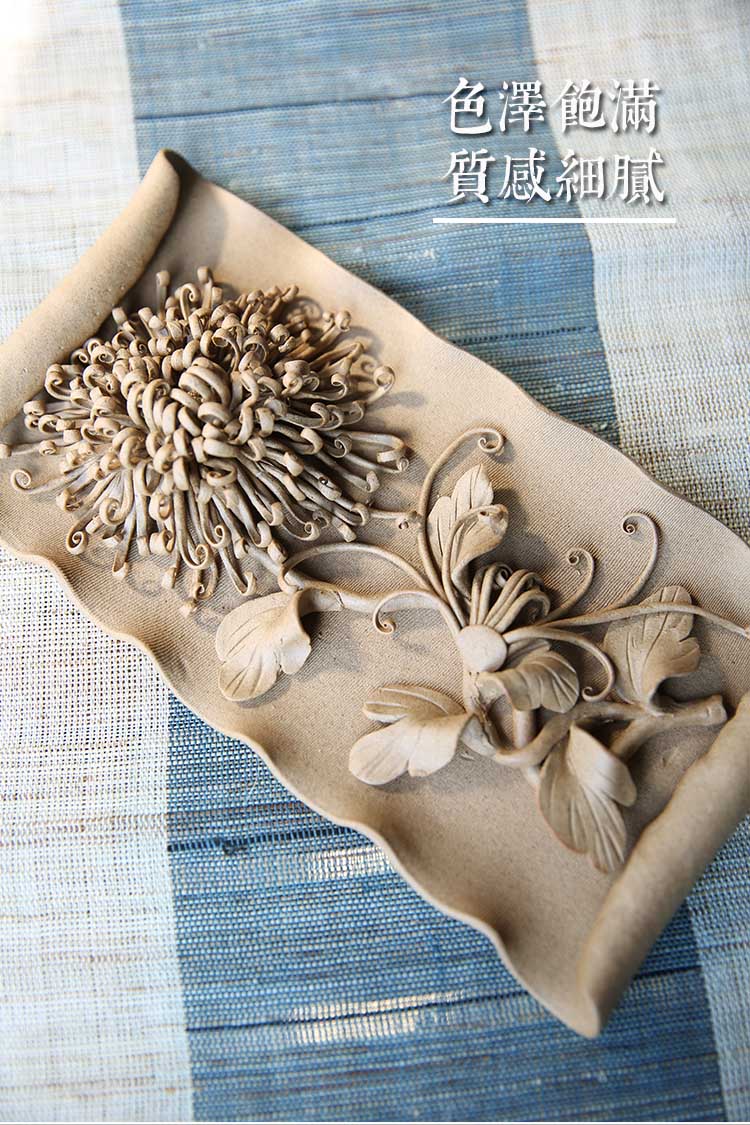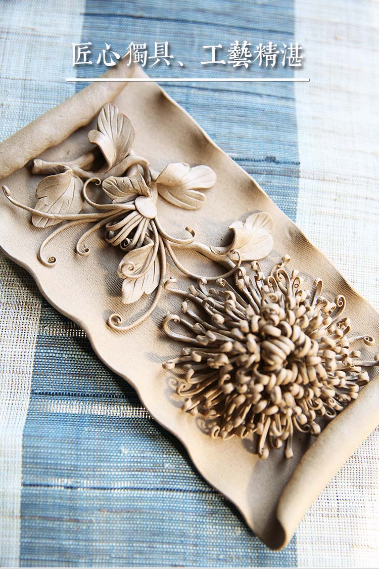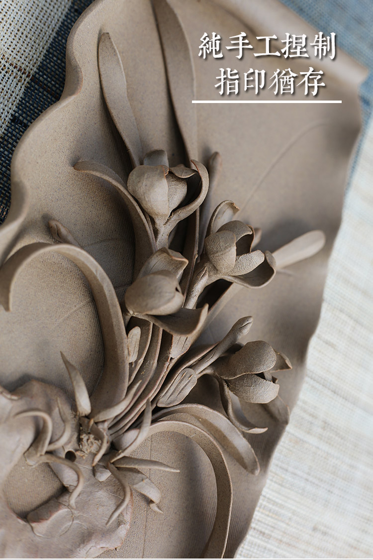 原創純手工粗陶泥桌面擺件個性鎮紙素雅禪意墻飾梅蘭竹可做裝飾畫1入