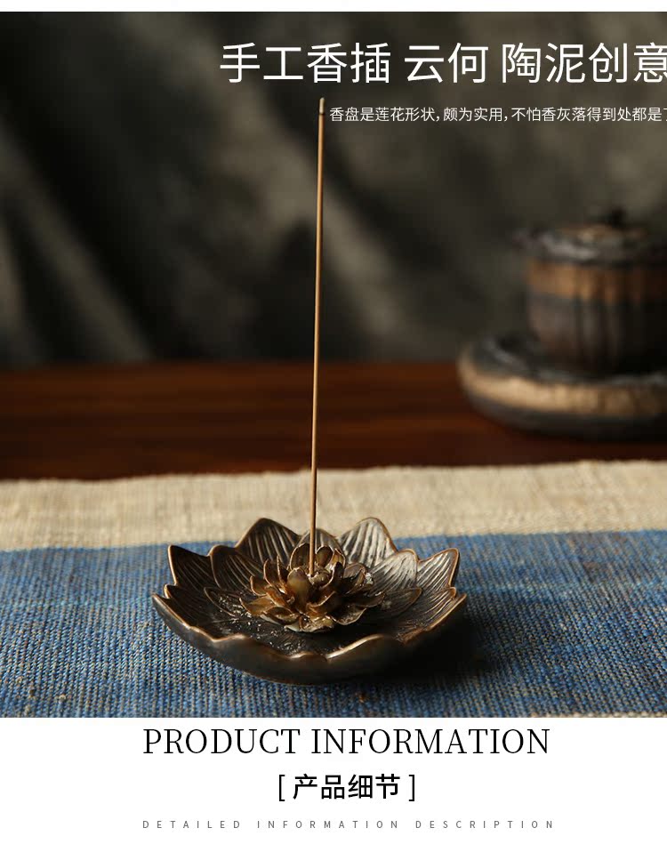 香盤手工 云何 創意盤香鐵銹色陶瓷臥蓮荷花薰線檀沉塔香盤紙1入