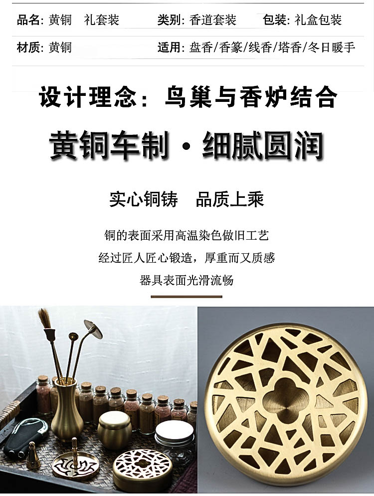 香道用具入門套裝純銅香具用品香印打拓香篆爐家用沉檀香香爐熏香1入