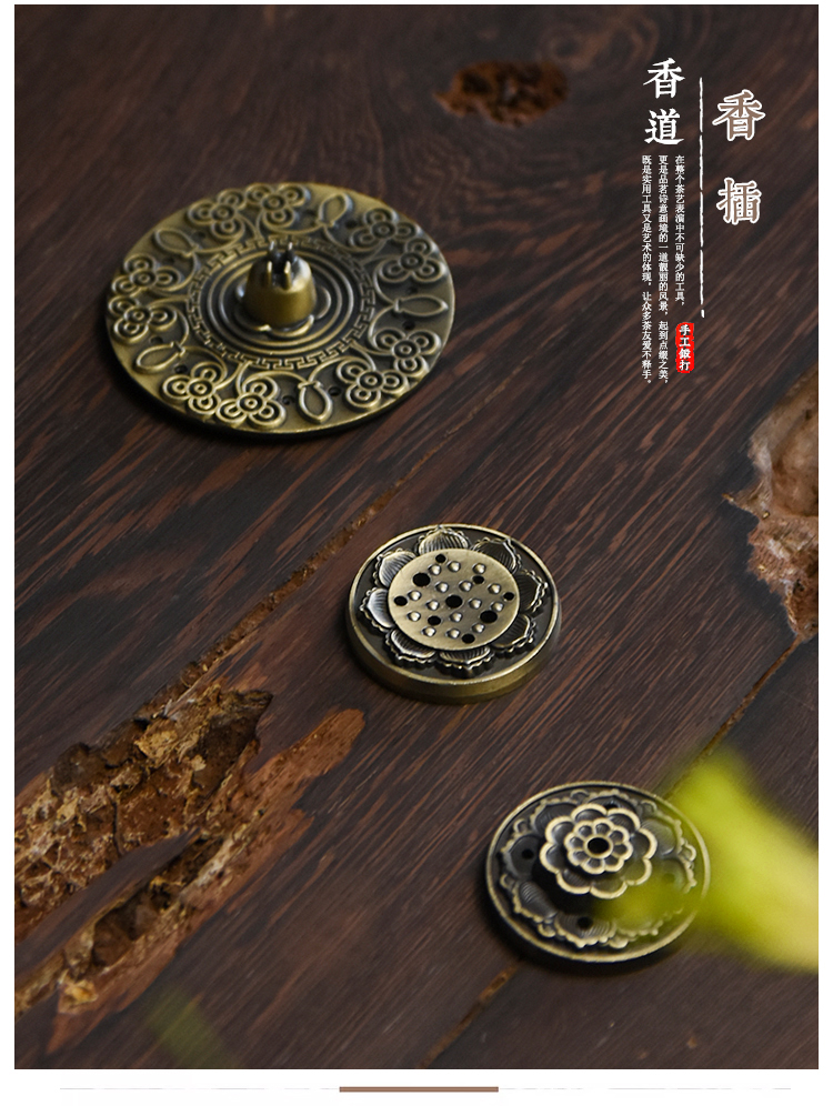 香爐家用室內香插香座仿古純銅線香插供佛香托盤凈化空氣臥室創意1入