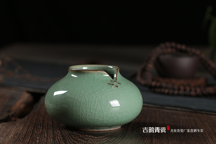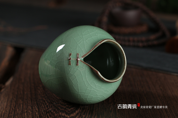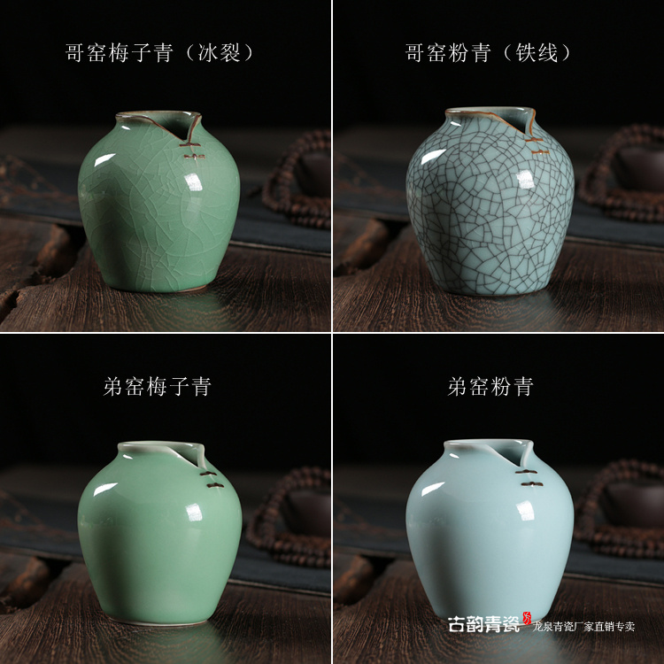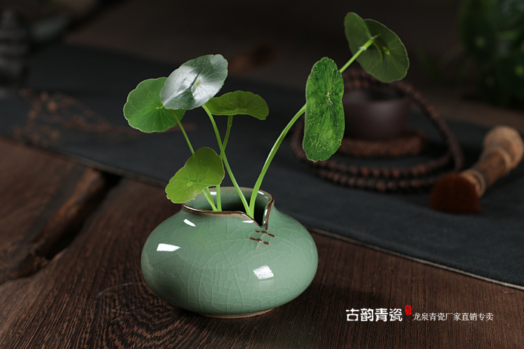 荷葉花器(小號哥窯梅子青冰裂)龍泉青瓷花瓶擺件客廳插花陶瓷水培容器綠蘿現代簡約家居創意裝飾
