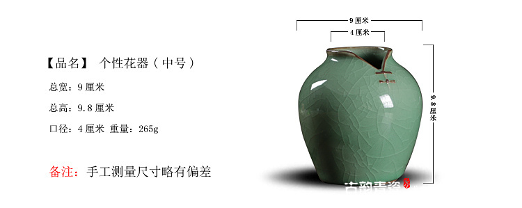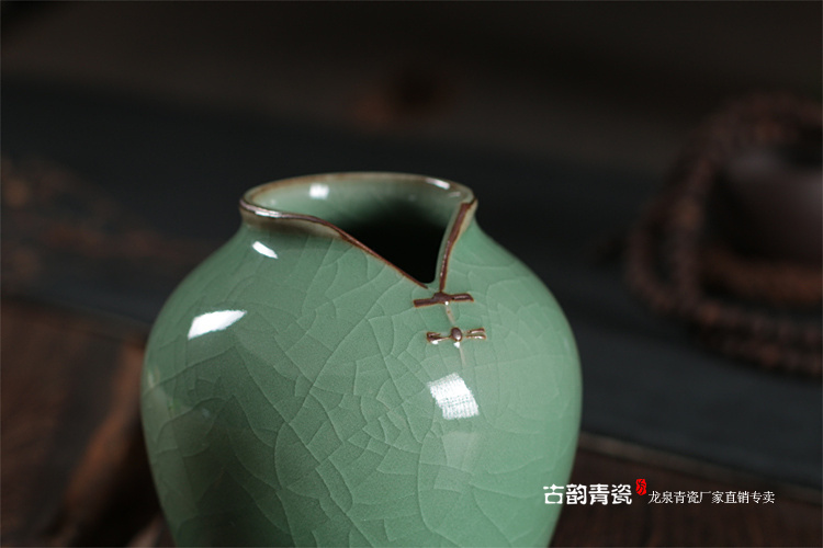 禪意日式小花瓶陶瓷創意花插古瓷器擺件瓷瓶龍泉青瓷水培家居花瓶1入