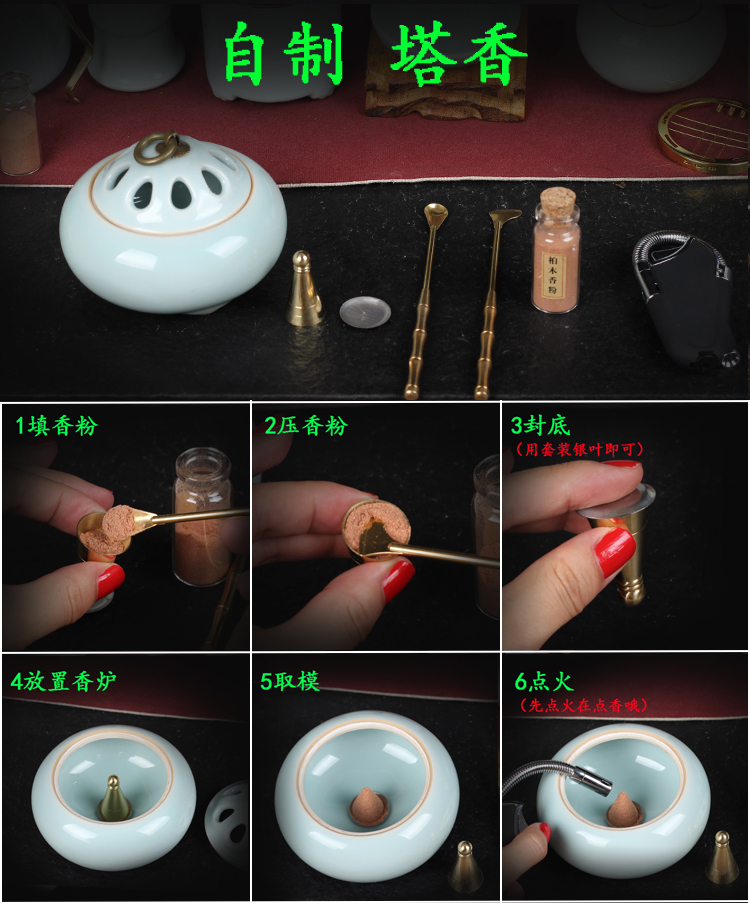 ▲塔香摸可自制塔香,搭配銀葉可以當香托,一舉兩得。▲因考慮到香片成本價高,大多客戶不需要香片,套裝內沒有配香片,需要的客戶可以另外到店鋪內購買。或聯系客服給您香片連接。▲葫蘆香插可點套裝里配套的盤香,線香。