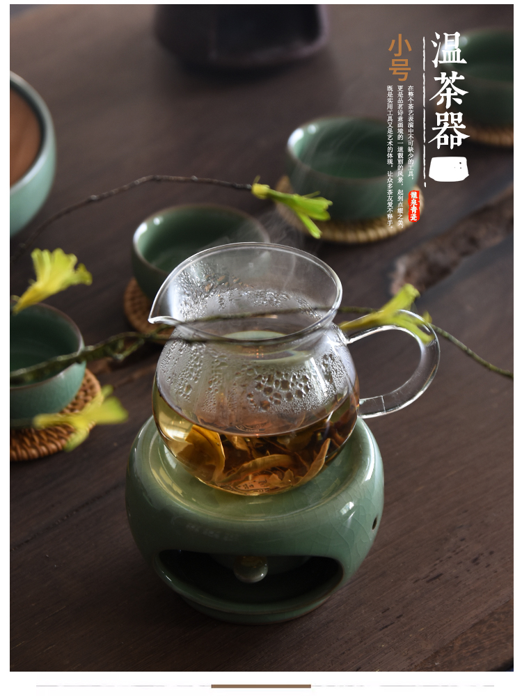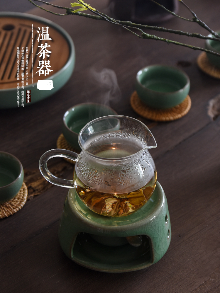 龍泉青瓷蠟燭煮茶器家用陶瓷日式復古加熱底座日式酒精燈保溫茶爐1入