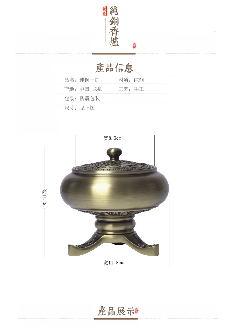 純銅香爐家用室內擺件創意居室盤香茶道熏香沉香仿古香道禪意供奉1入