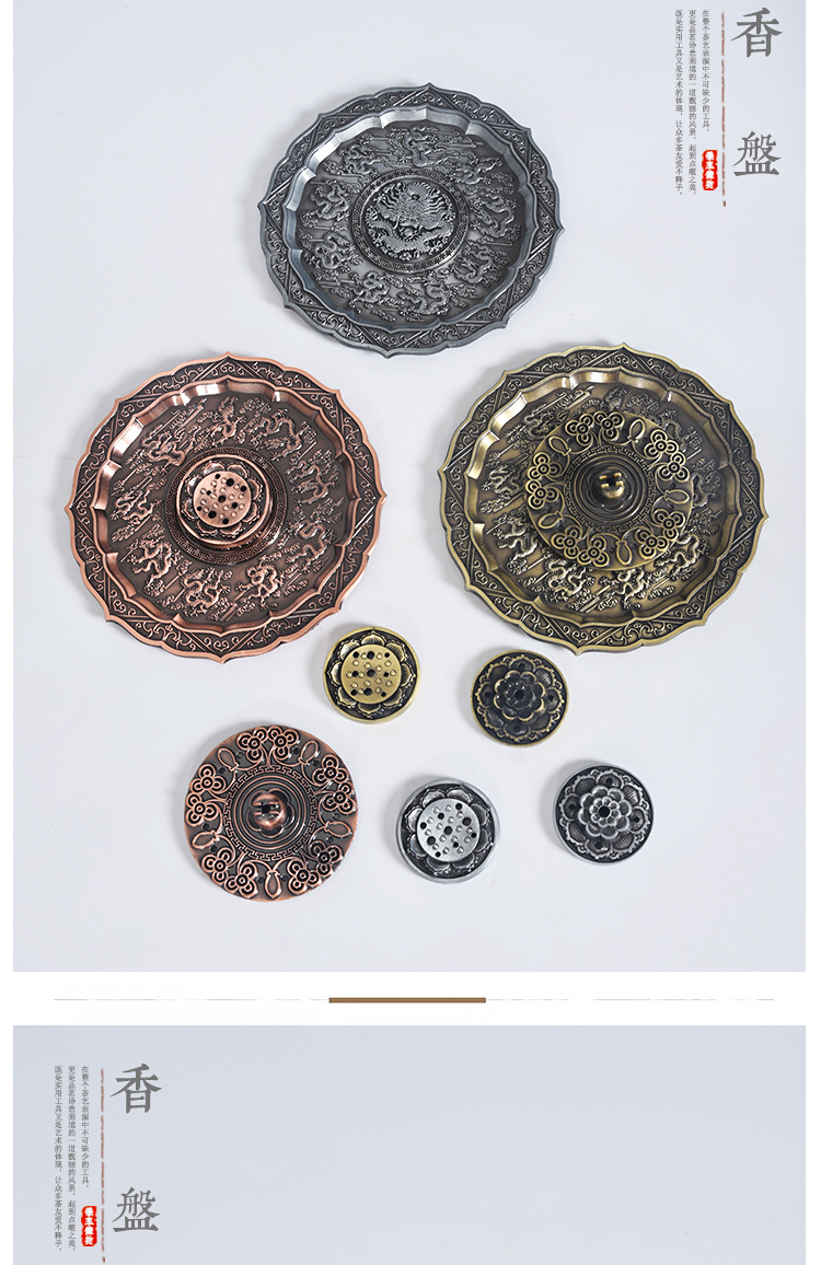 香爐家用室內供佛凈化空氣仿古純銅大號蚊香爐香座檀香沉香線香盤1入