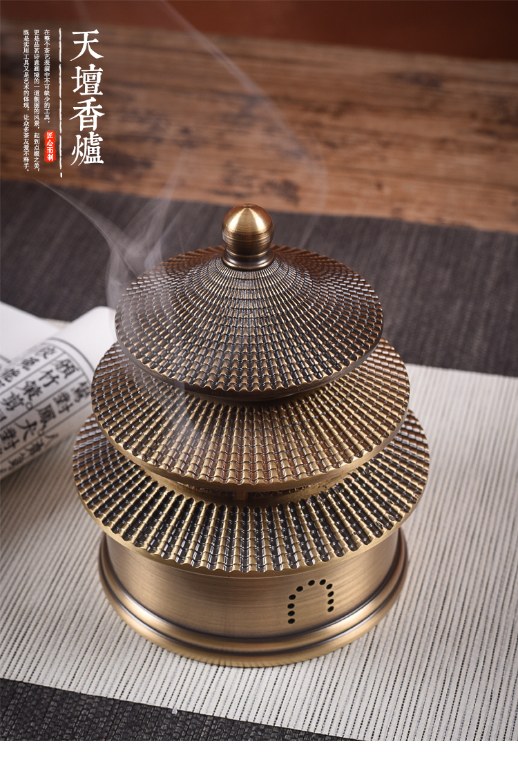 純銅香爐家用室內擺件創意仿古天壇熏香盤香沉香供奉禪意居室香道1入