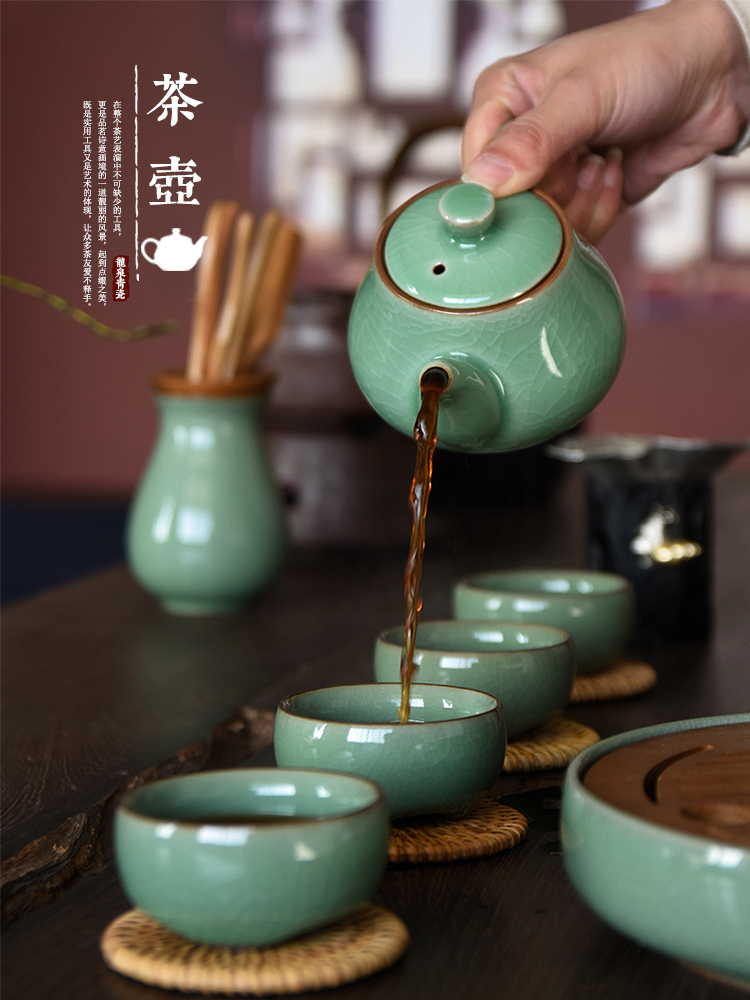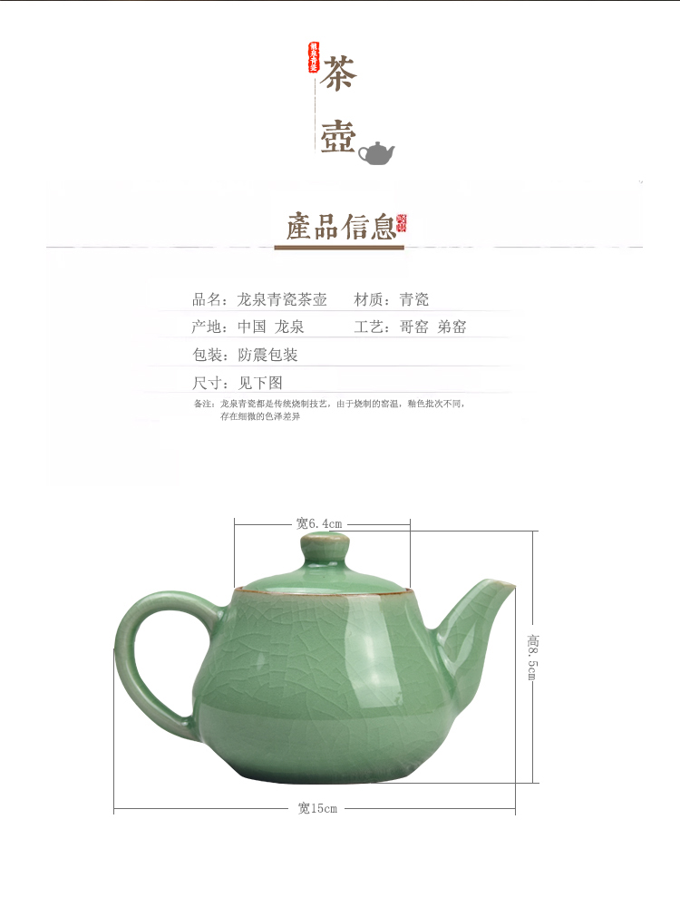 龍泉青瓷茶壺家用陶瓷耐高溫耐熱手工單壺復古功夫茶具中式西施壺1入