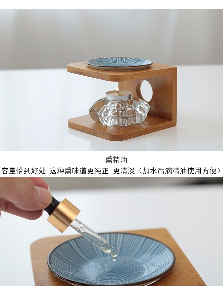 竹木精油燈香薰爐創意香爐燭臺家用蠟燭加濕陶瓷薰香燈座裝飾擺件1入