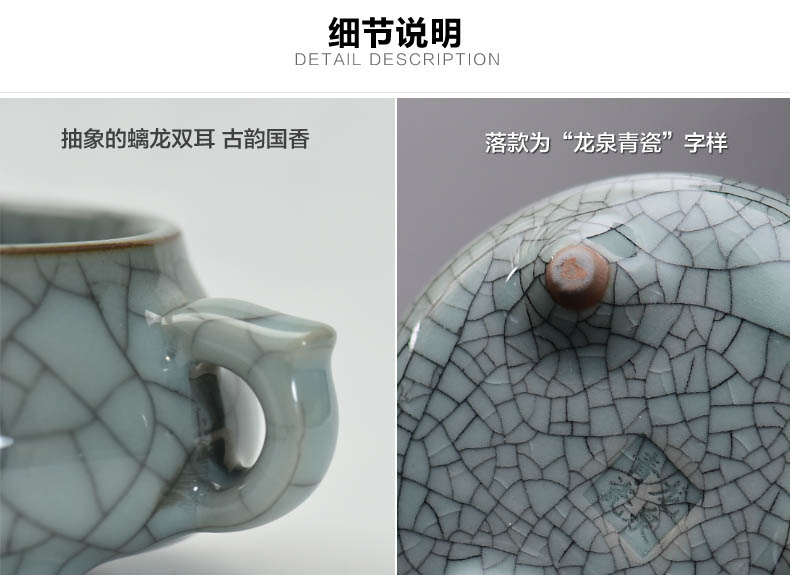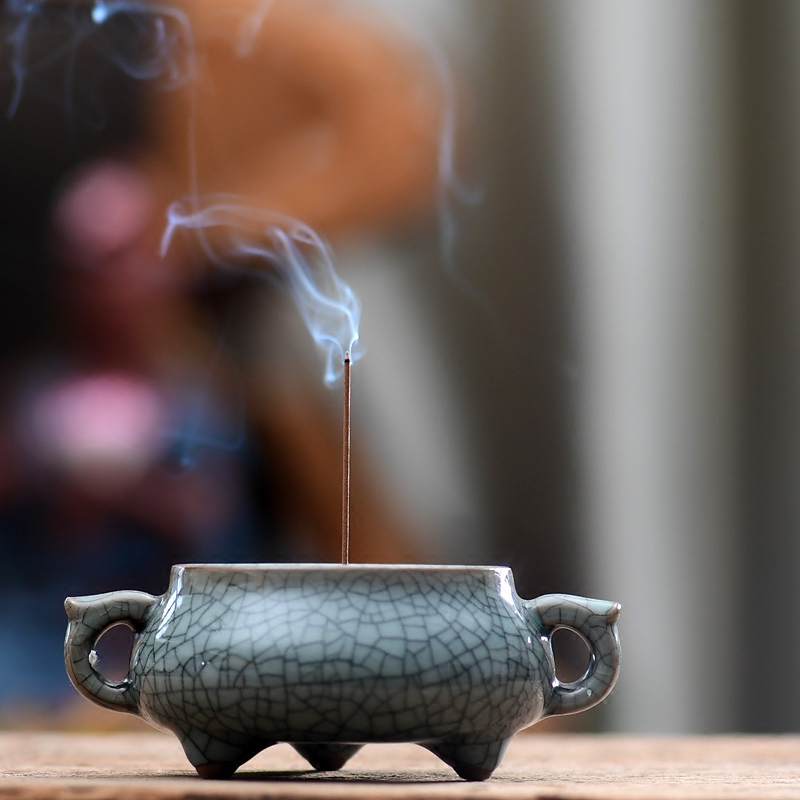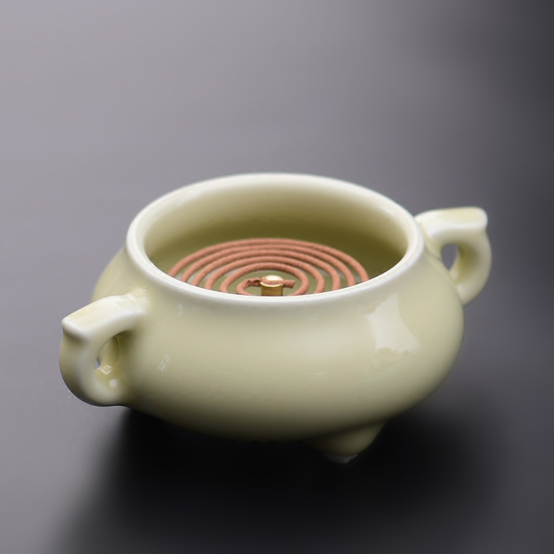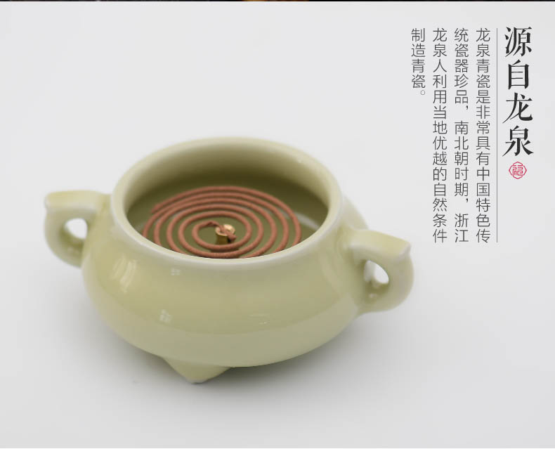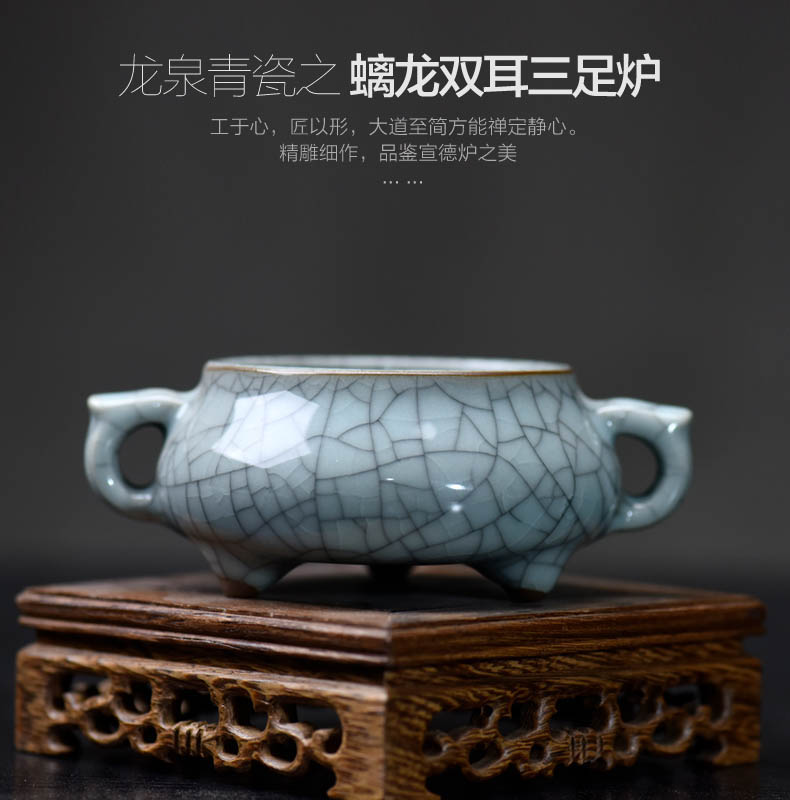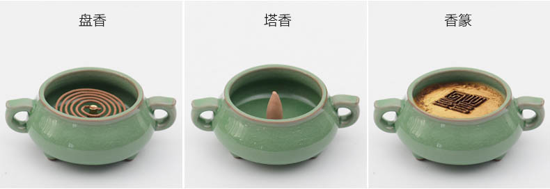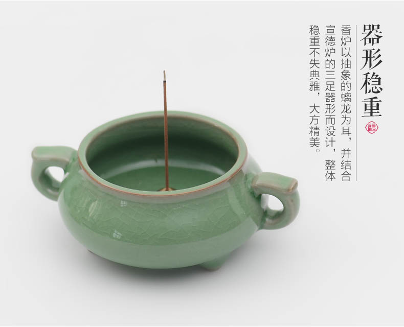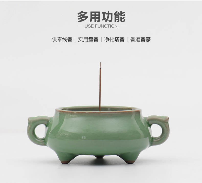 龍泉青瓷香爐古風香道雙耳供奉仿古陶瓷香插居室足線香爐小三茶道1入