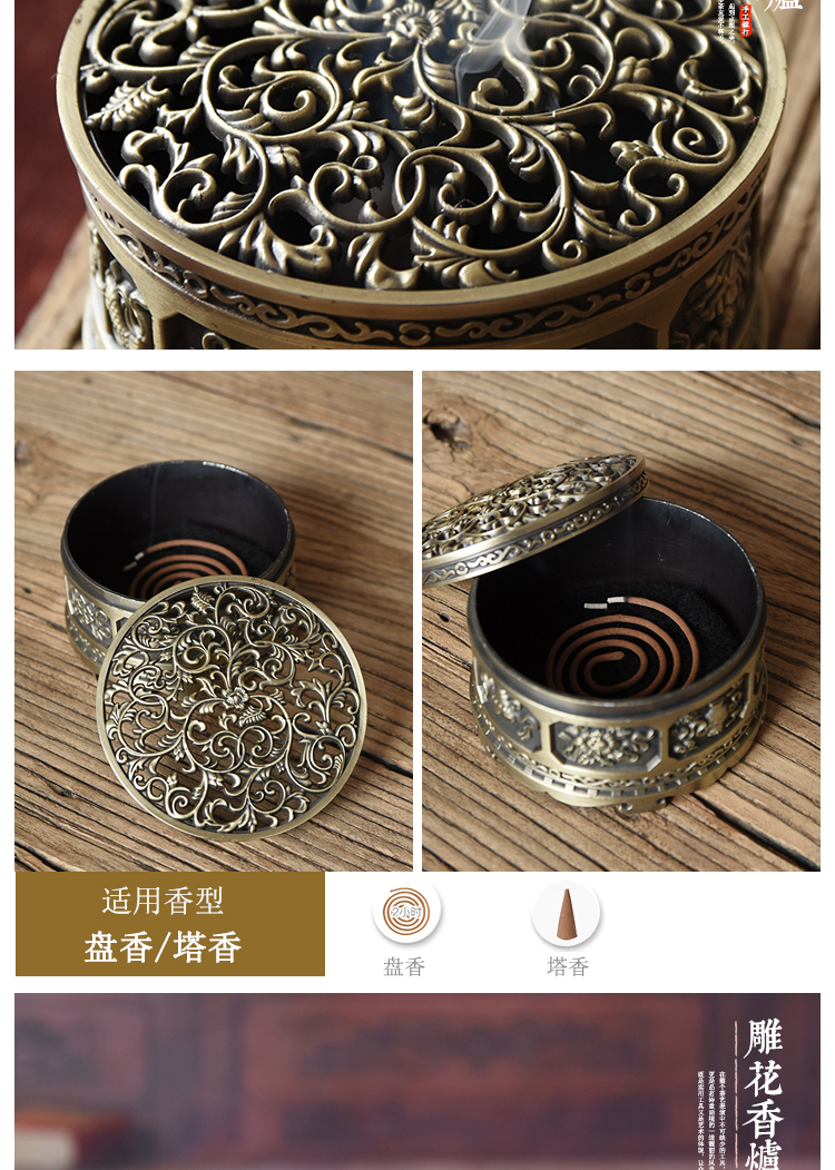 仿古銅合金銅盤香爐家用室內吉祥八寶香薰爐居室茶道擺件沉香供佛1入