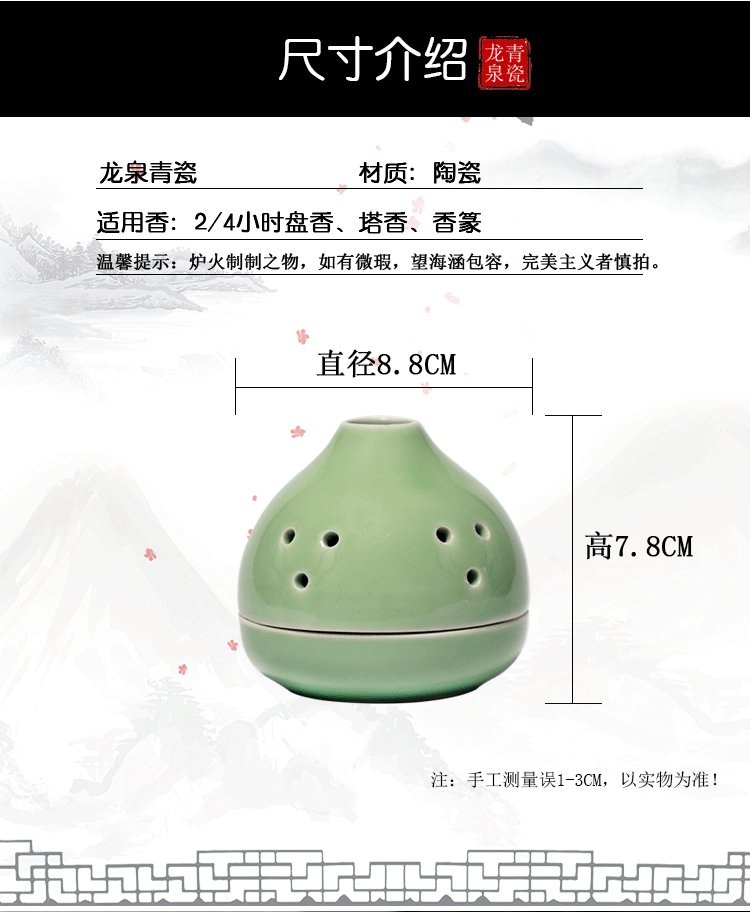 龍泉青瓷香薰爐家用室內陶瓷佛具仿古供奉香爐居室擺件沉香檀香爐1入