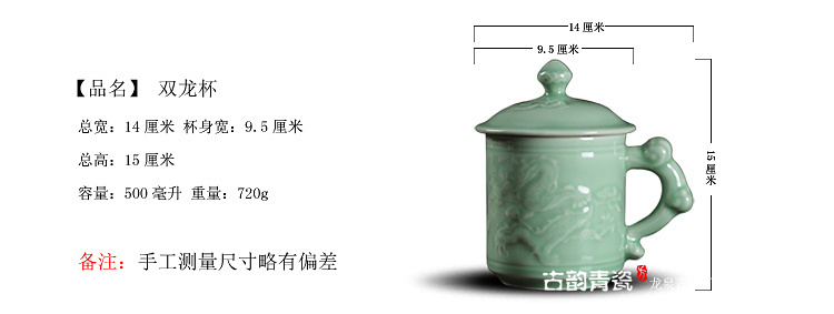 龍泉青瓷茶杯帶蓋陶瓷過濾杯子辦公泡茶杯茶水分離馬克杯正品多款1入