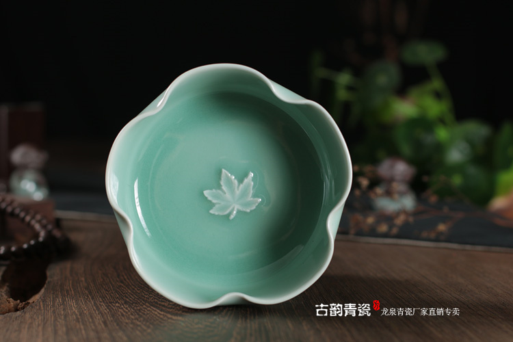 溫馨提示: 龍泉青瓷采用天然原料,綠色環保、做工精細、要求嚴格,不含任何鉛鎘!請放心購買。 【產品名稱】:龍泉青瓷手工折邊楓葉洗 【規 格】:寬12.5厘米 高4.5厘米 足徑8.2厘米 【產 地】:浙江龍泉 【包 裝】:普通防震包裝(需要禮盒請拍禮盒) 【工 藝】:弟窯粉青 粉青是一種釉色,石灰堿釉中的一種。它發鐵的氧化物為主要呈色劑,還有少量的錳和鈦。粉青的作法是生坯掛釉,釉厚1—2.5毫米.入窯后經高溫還原焰燒成.釉色青綠淡雅,美可勝玉,光中透著寒氣. 四種釉色可供選擇(01哥窯粉青(鐵線)、02哥窯梅子青(開片)、03哥窯米黃(鐵線)04弟窯粉青、05弟窯米黃)