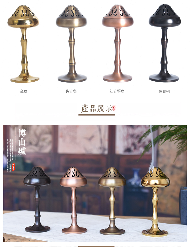 博山爐家用室內仿古鏤空沉檀盤香爐供佛純銅客廳禪意凈化空氣香臺1入