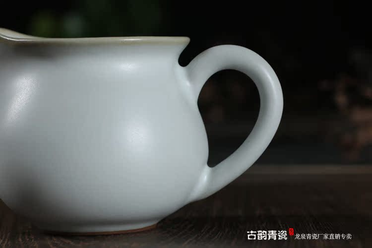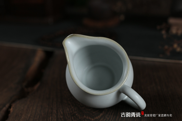 青瓷高檔開片汝瓷公道杯 富貴茶海胖海 正品月白色汝窯功夫茶具1入