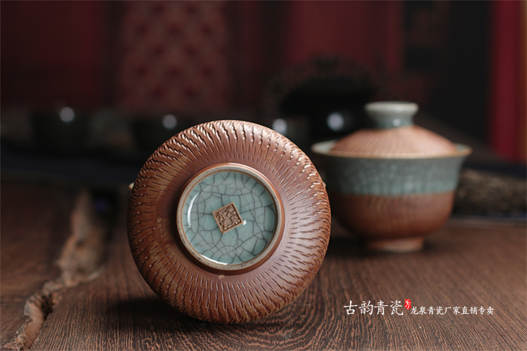 龍泉青瓷蓋碗茶杯 茶具大號跳刀茶碗 陶瓷功夫茶三才蓋碗1入