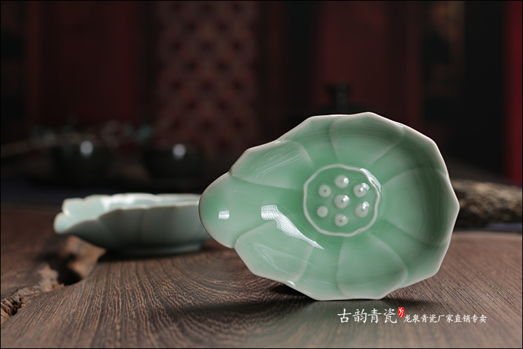 陶瓷茶荷龍泉青瓷功夫茶具荷葉蓮子茶勺茶則賞分茶盤茶道零配件1入