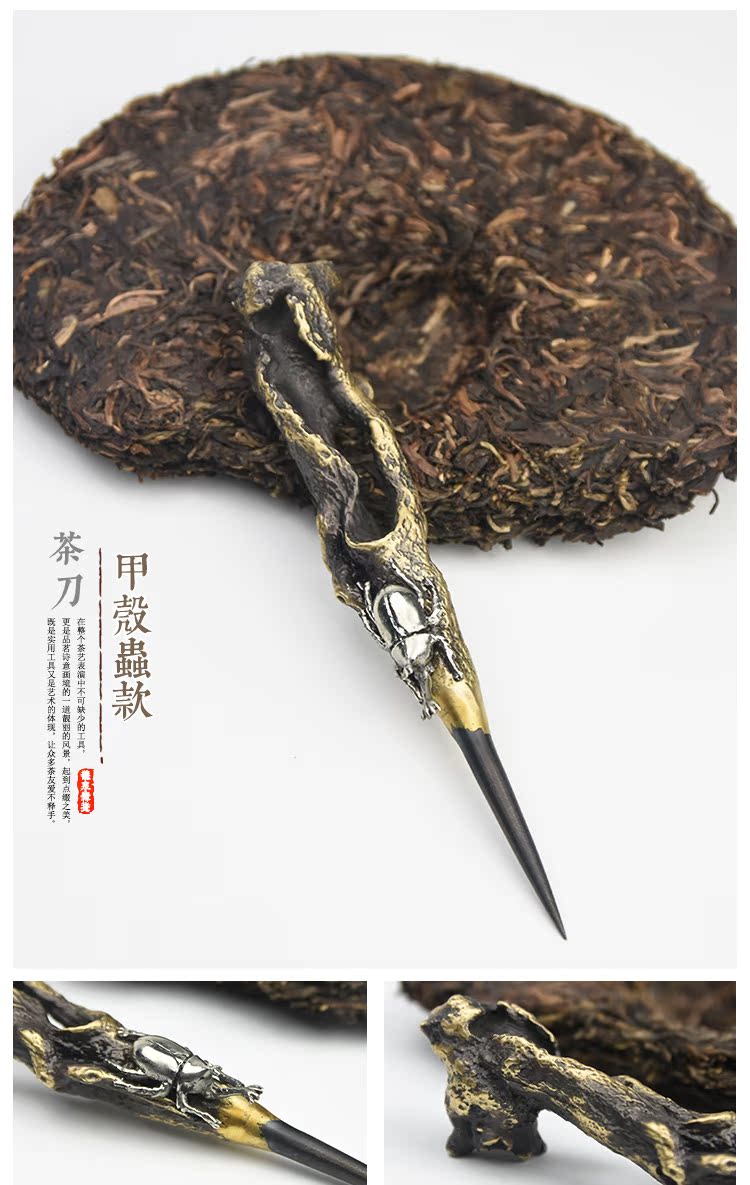 龍泉茶刀普洱茶刀純手工大馬士革茶刀高檔茶針茶錐純手工茶具配件1入
