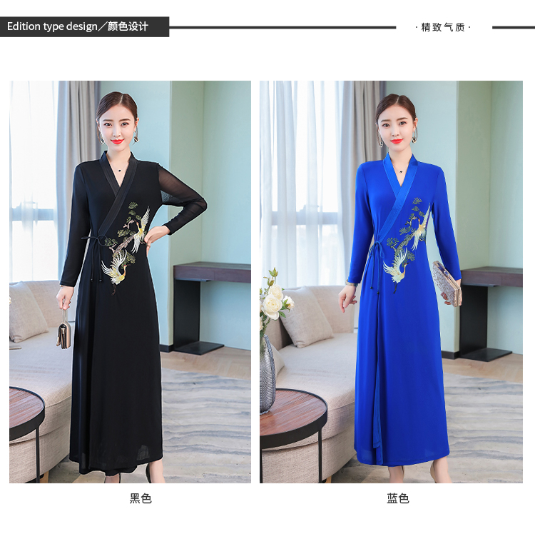 [2]2020春裝新款原創中國風民族風女士氣質復古繡花網紗改良連衣裙1入