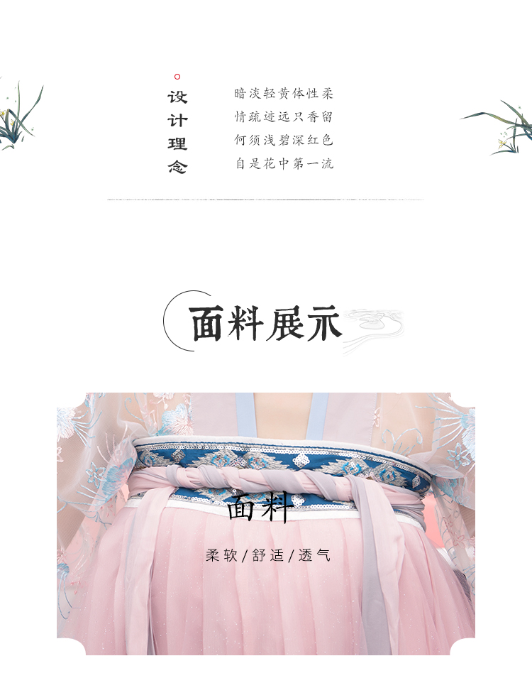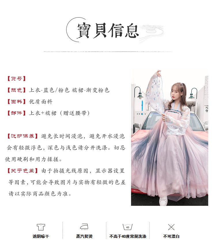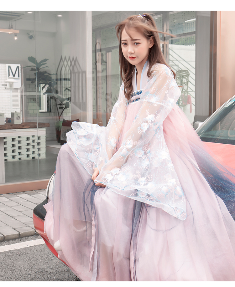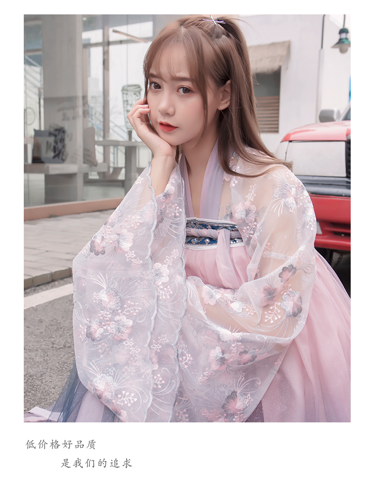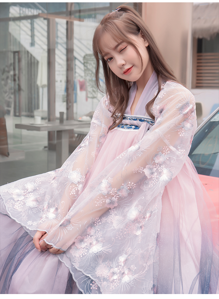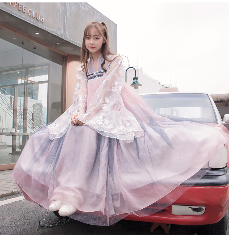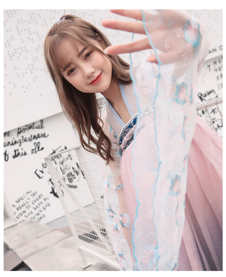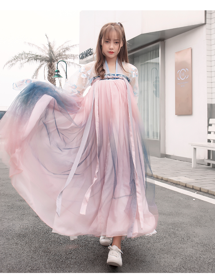 [2]網紅改良漢服刺繡花背心上襦6米大擺漸變齊腰裙魏晉風大袖衫套裝1入