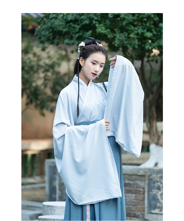 [2]中國風傳統日常漢服改良連衣裙刺繡交領交領大袖一片式襦裙三件套1入