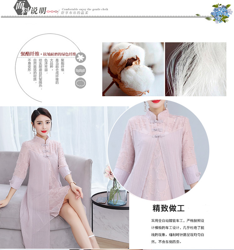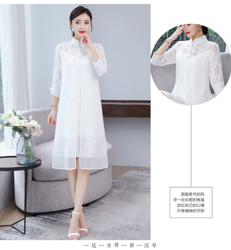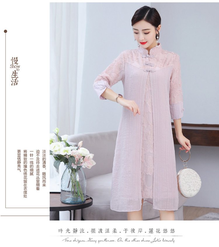 [2]中國風改良旗袍春夏女裝新款中式盤扣改良旗袍淑女蕾絲連衣裙顯瘦1入