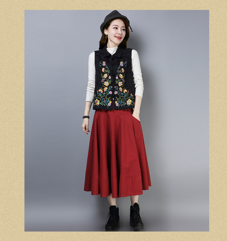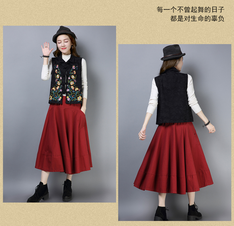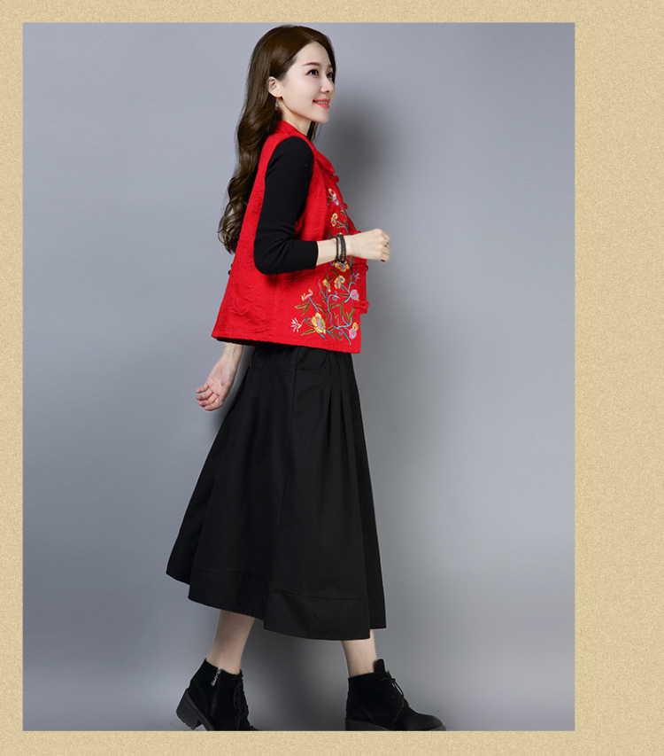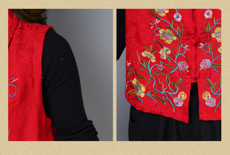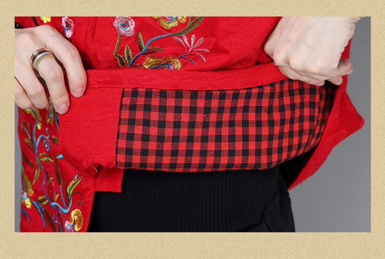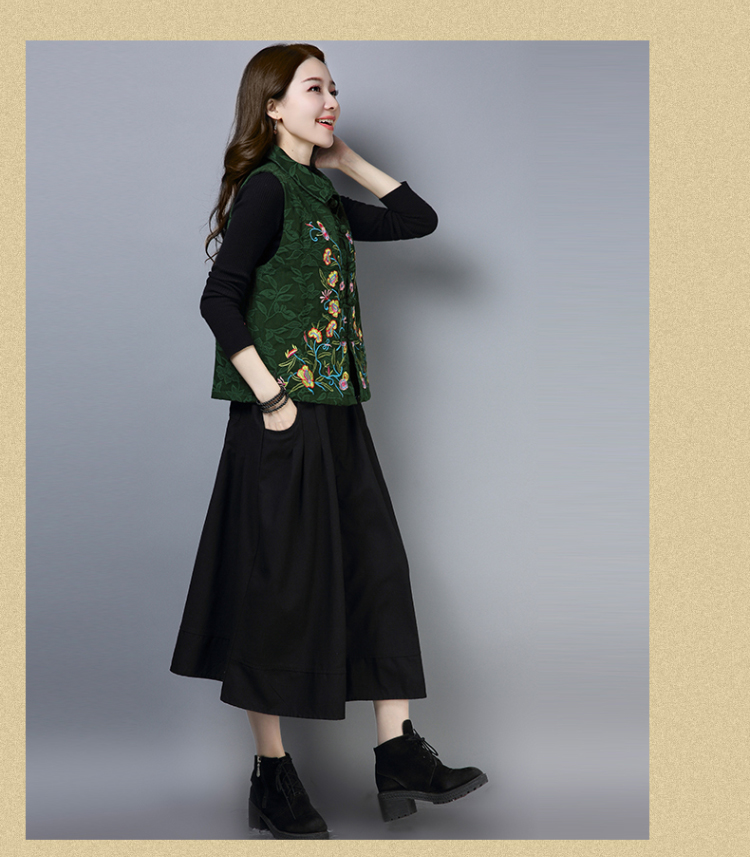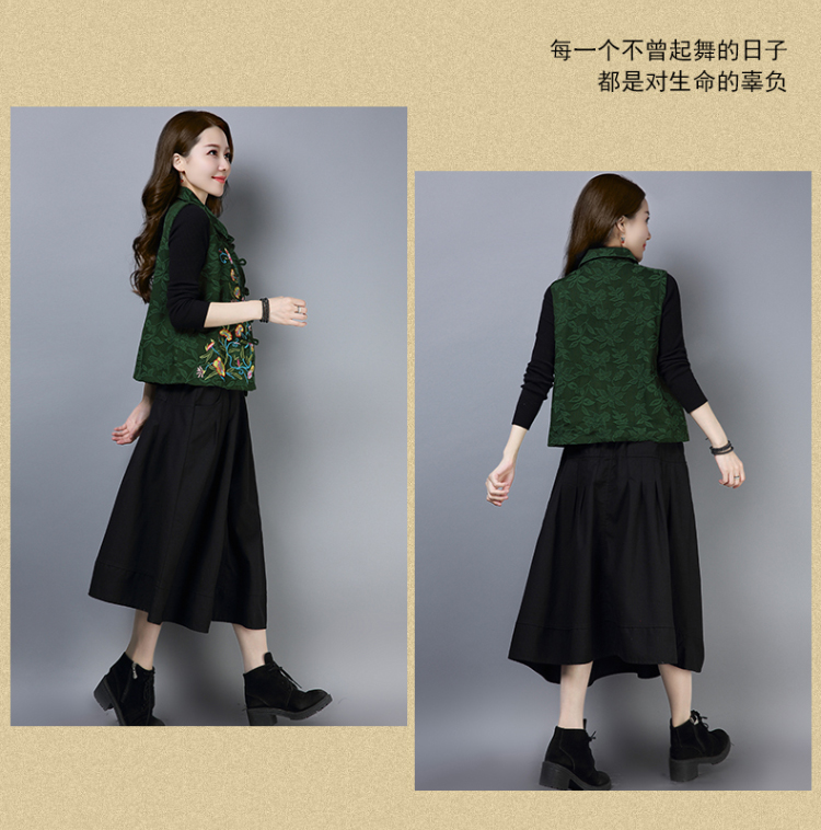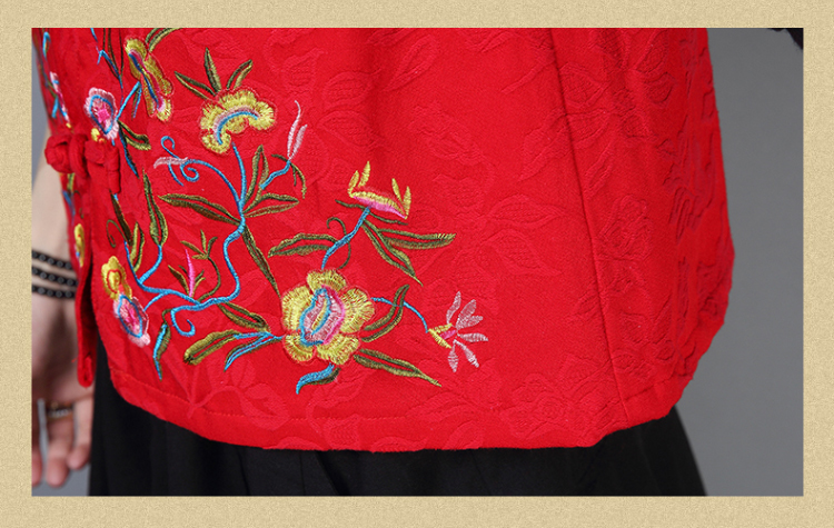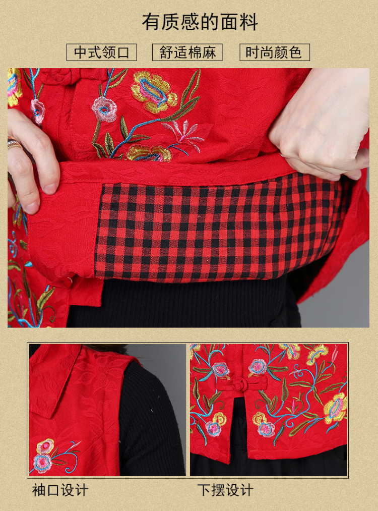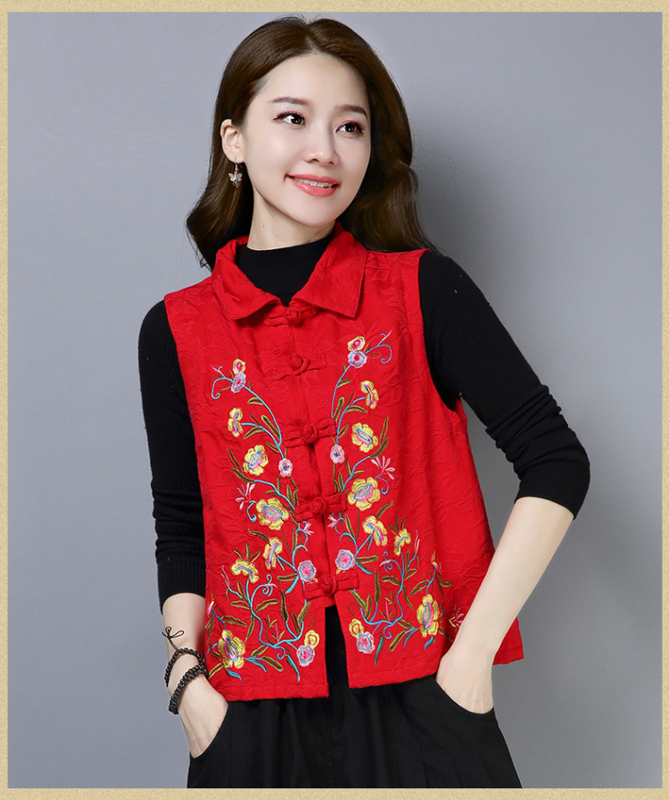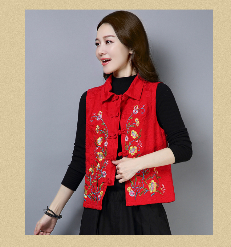 2019秋冬新款民族風女裝提花刺繡立領無袖夾層馬甲中式唐裝短外套1入
