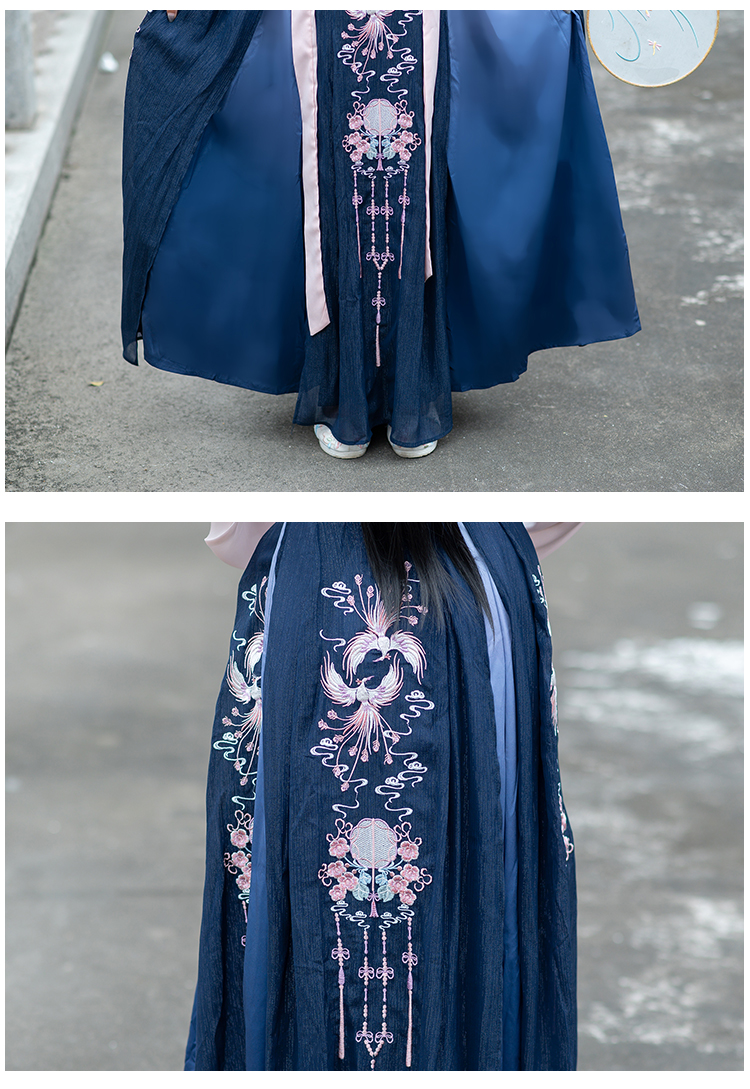 2019秋冬裝中國風改良漢服傳統復古刺繡大擺齊胸襦裙連衣裙套裝1入