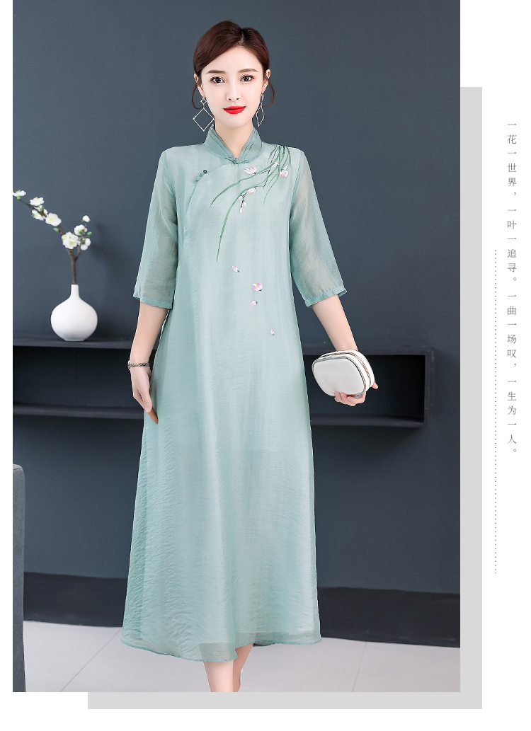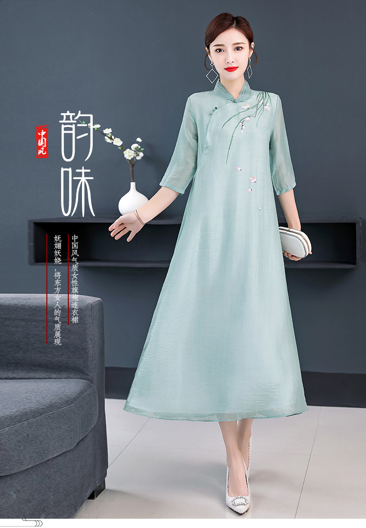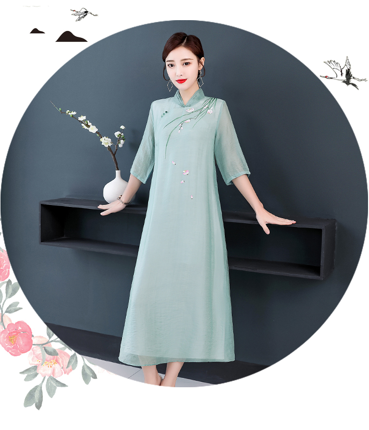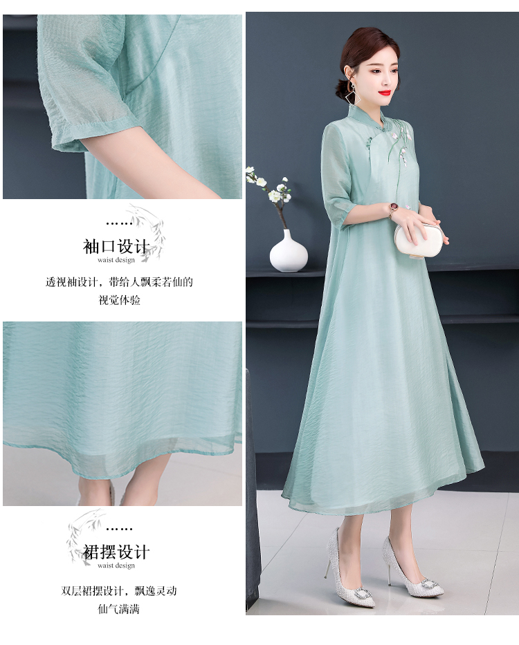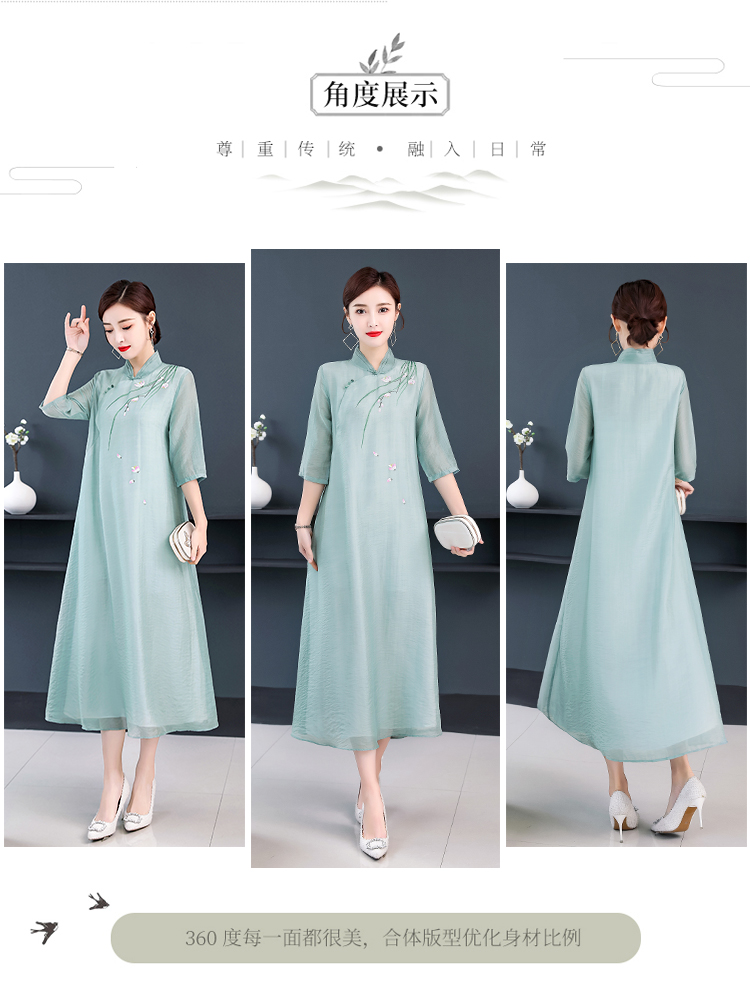 2020夏裝中國風女裝文藝復古連衣裙改良漢服禪服改良旗袍式茶服女1入