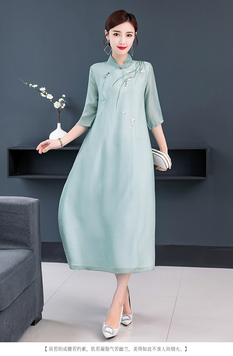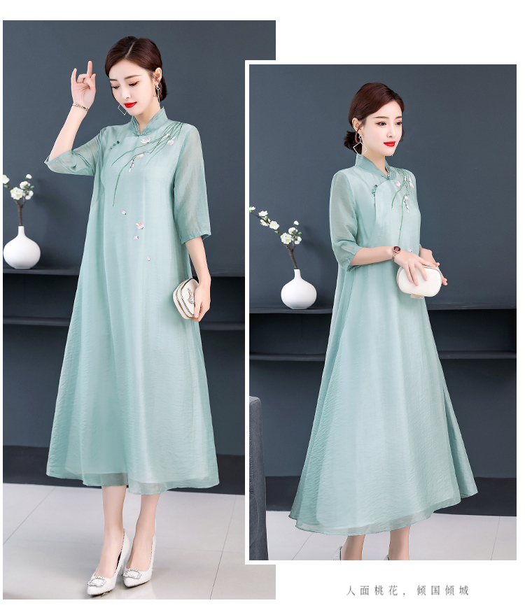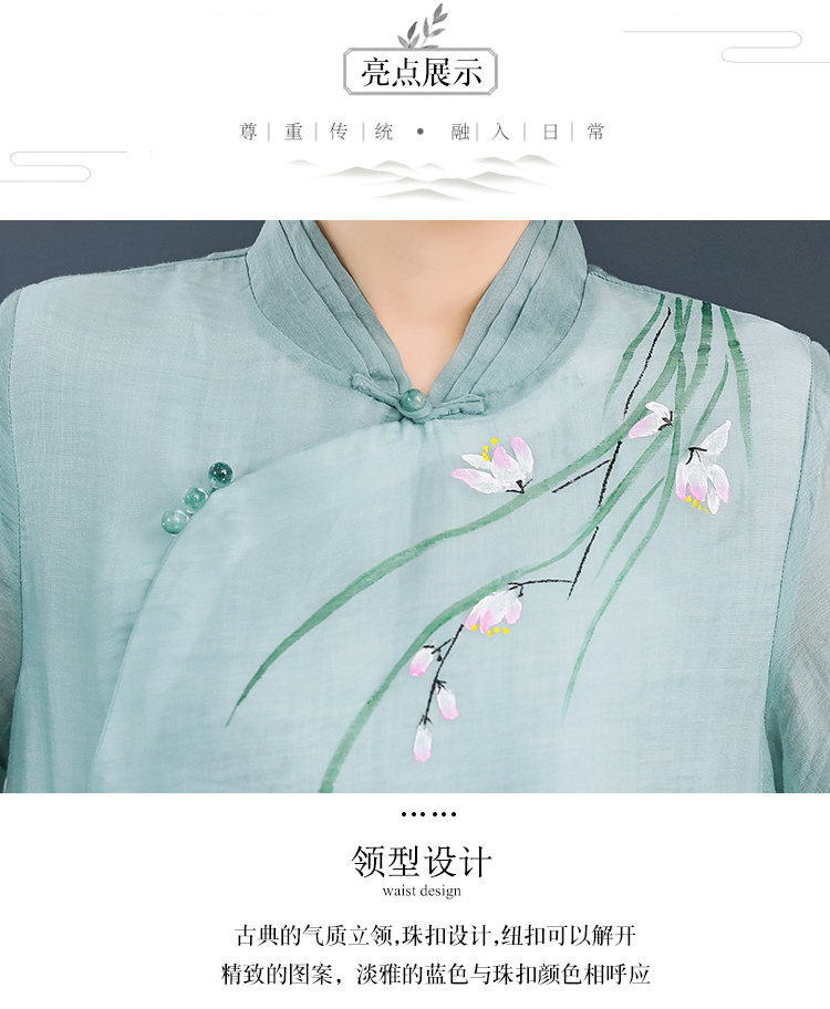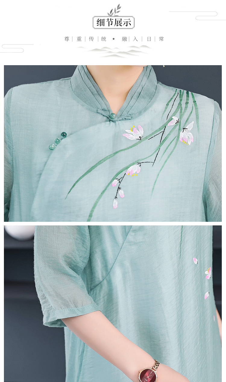 2020夏裝中國風女裝文藝復古連衣裙改良漢服禪服改良旗袍式茶服女1入