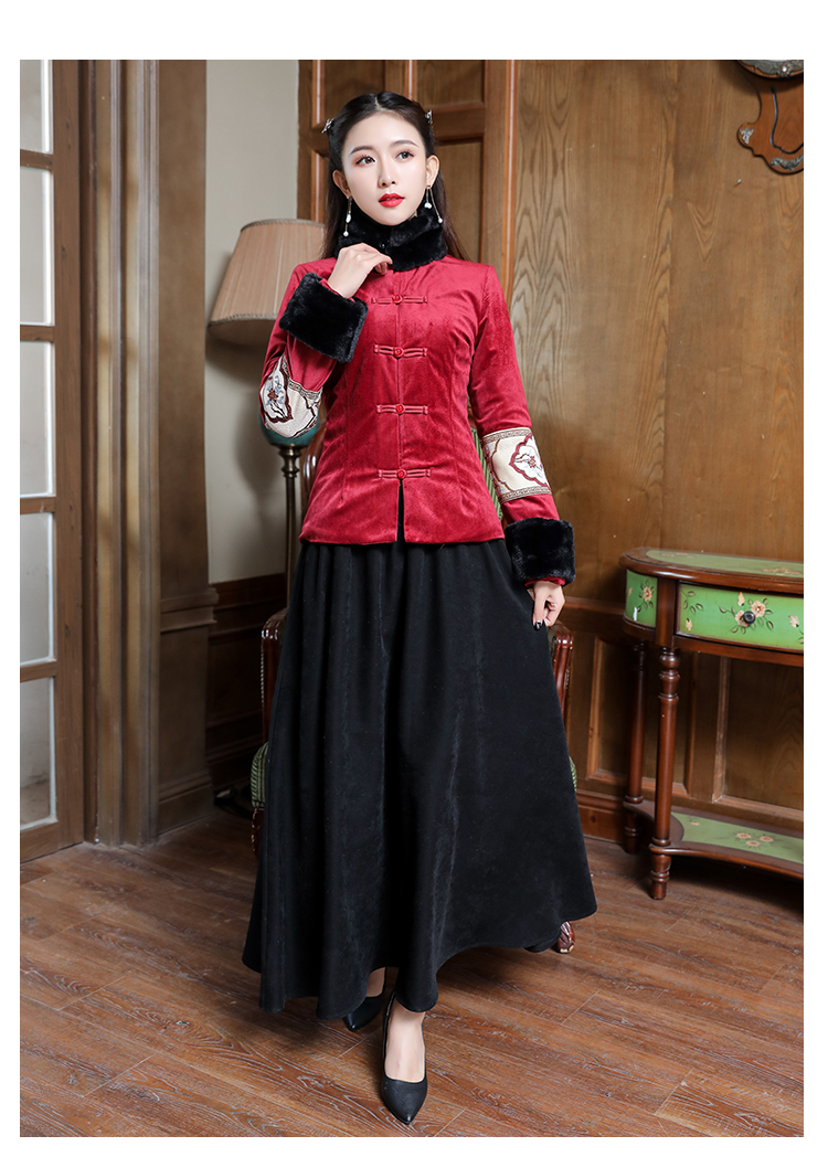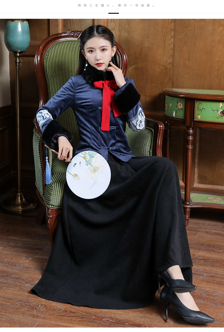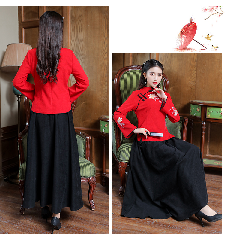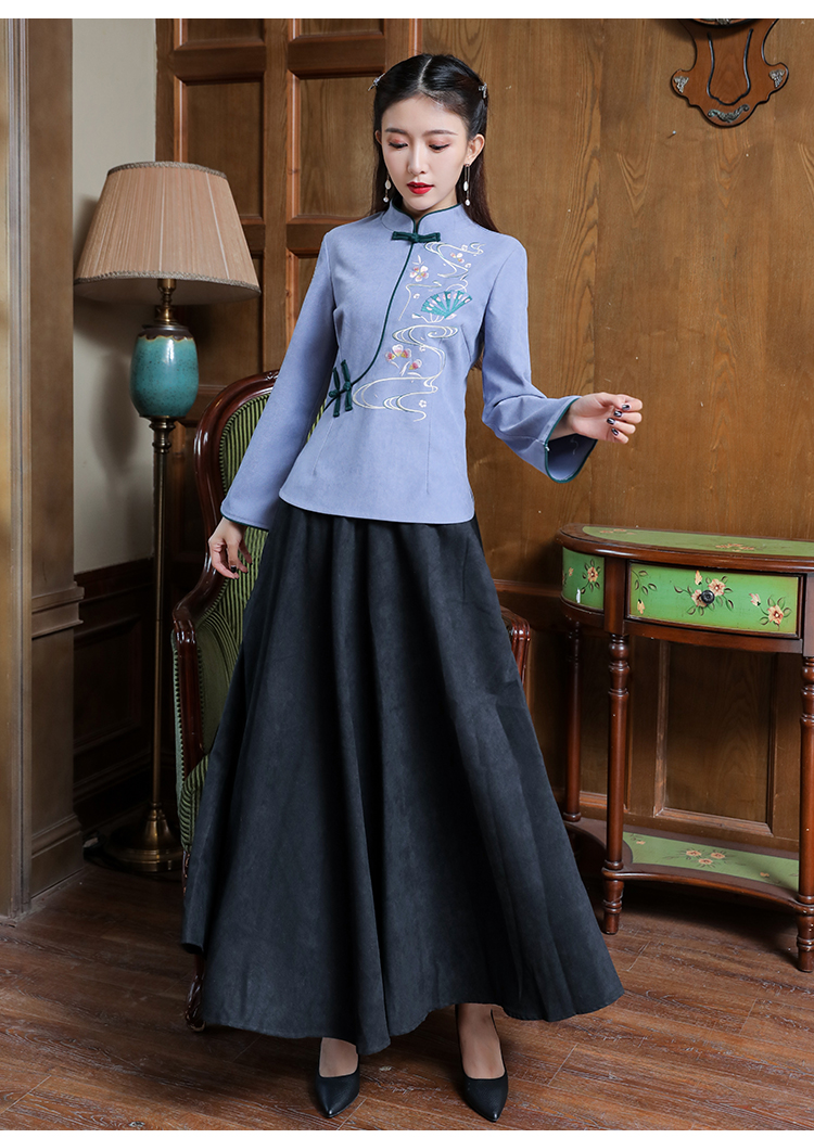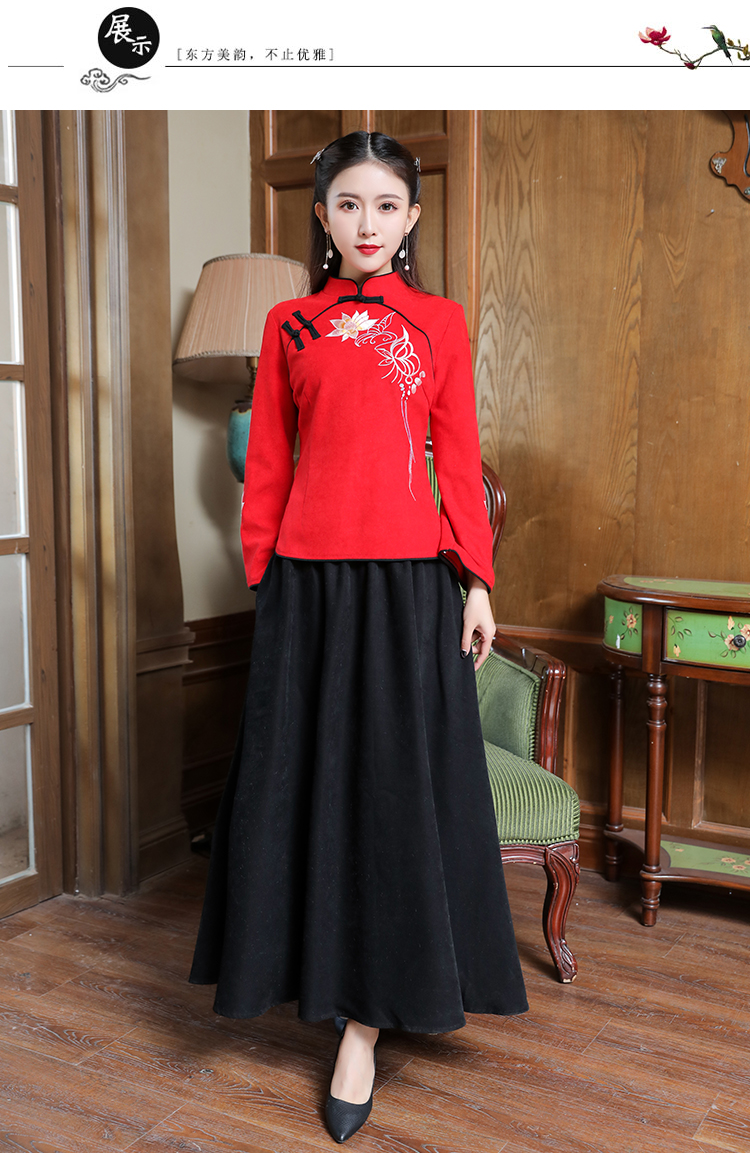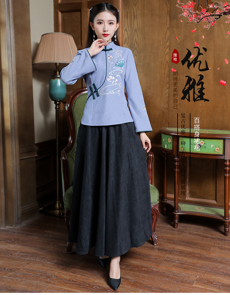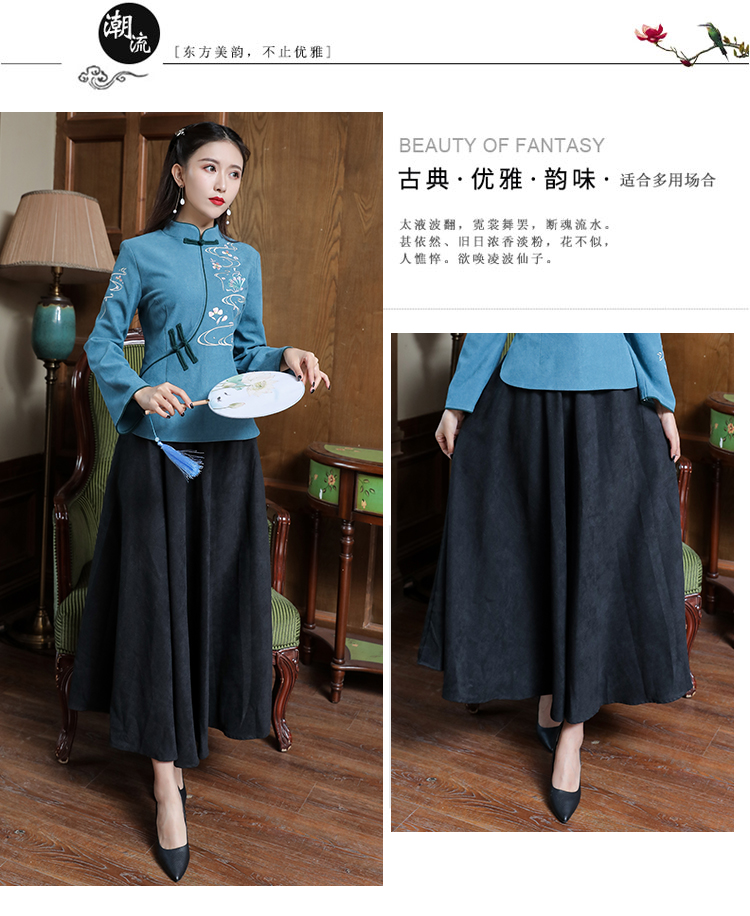 2020春裝新款中國風文藝復古民國茶服長裙秋冬厚款半身裙大擺裙子1入